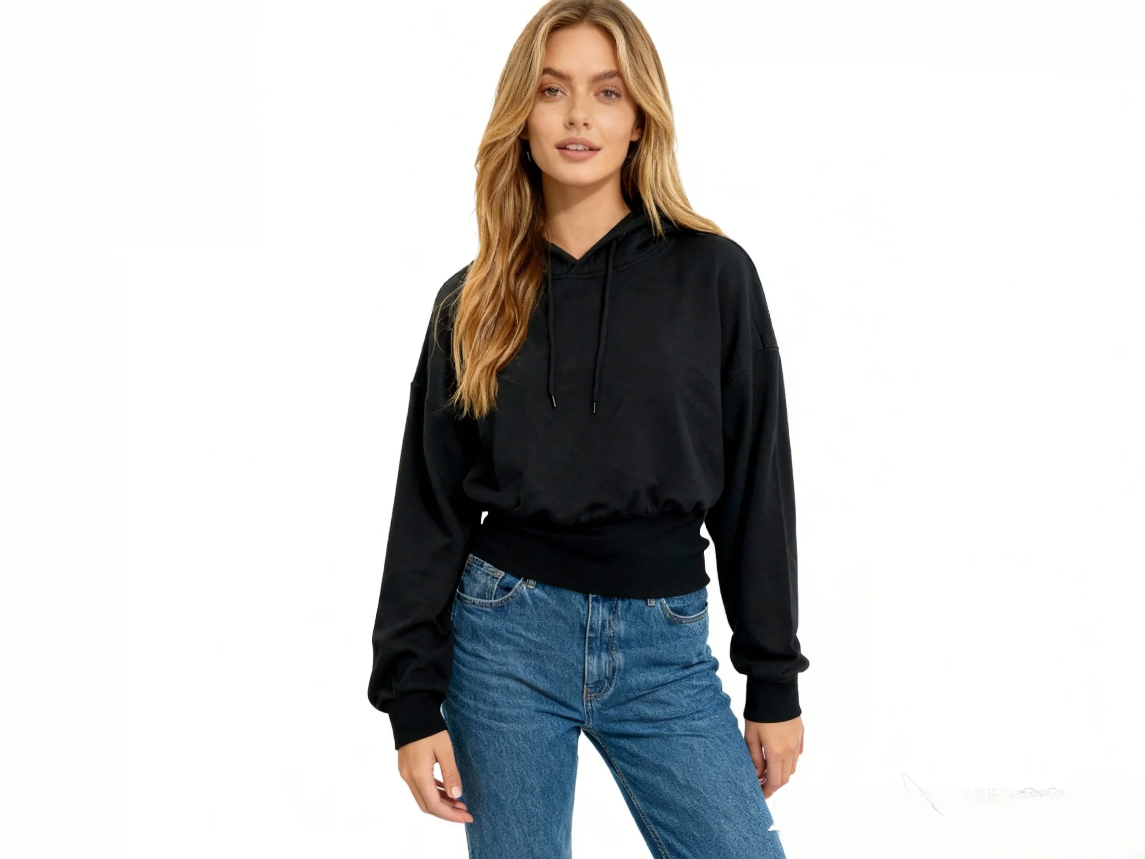 Spring/Autumn Cotton Spandex French Terry Light Luxury Cropped Hoodie Drop Shoulder & Waist Band Casual Women's Sweatshirt
