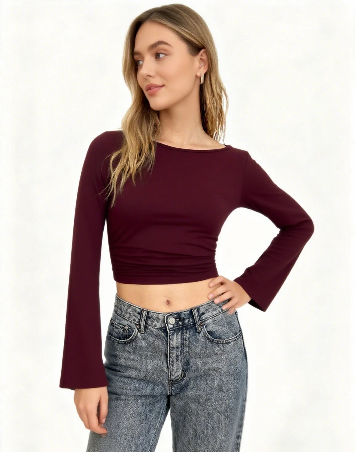 Stylish Women's Tshirt Full Sleeve Crop Top - Elegant Basic t Shirt for Women Ladies, Perfect for Wholesale & Casual Outfits