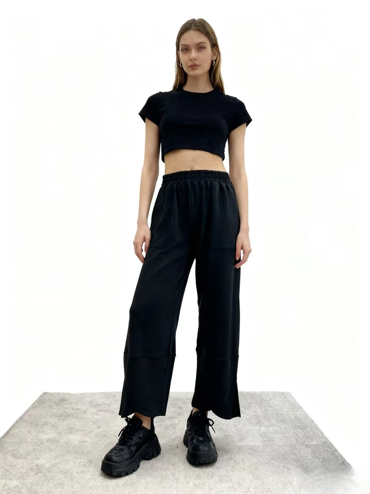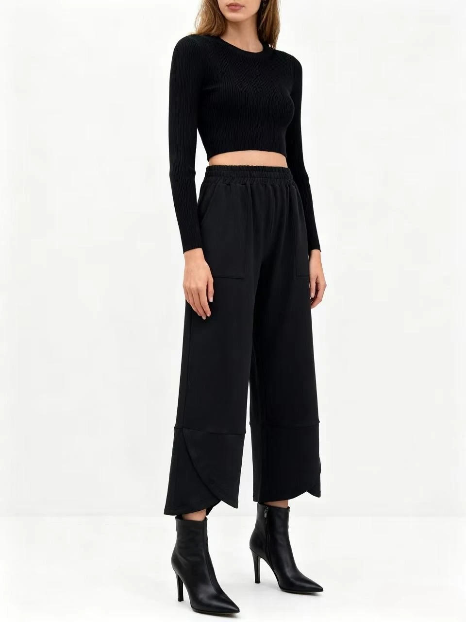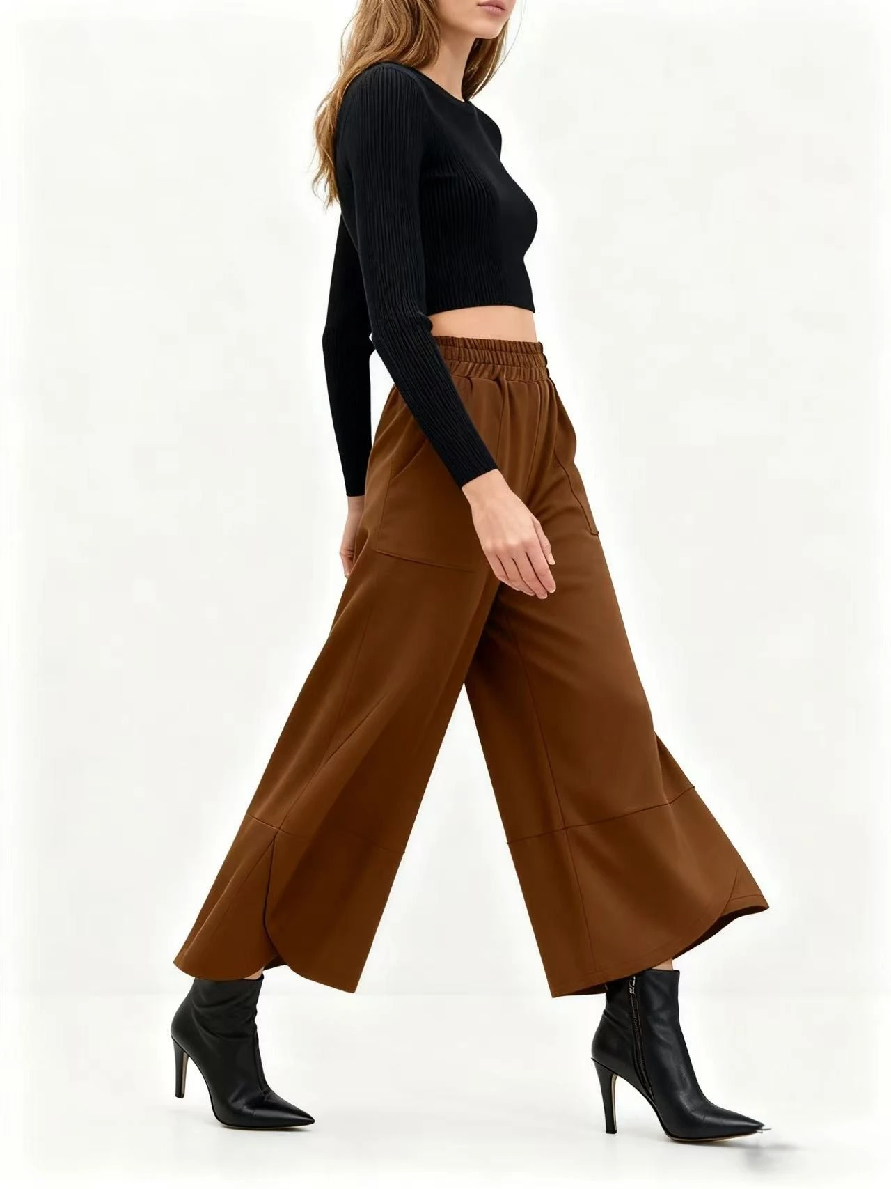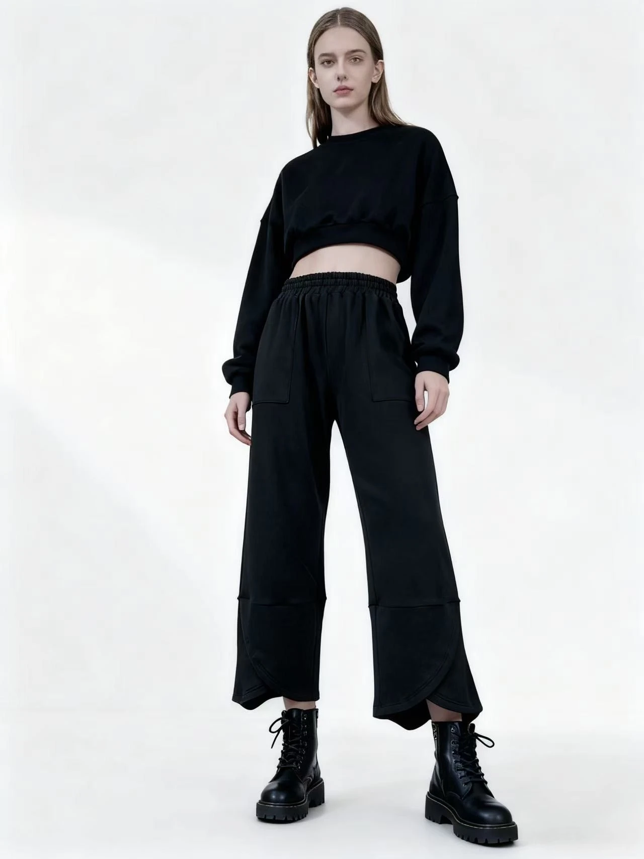 Women's Casual Wide Leg Pants Cotton Spandex French Terry Solid Color Regular Mid Waist Elastic Waist Autumn Plain Dyed