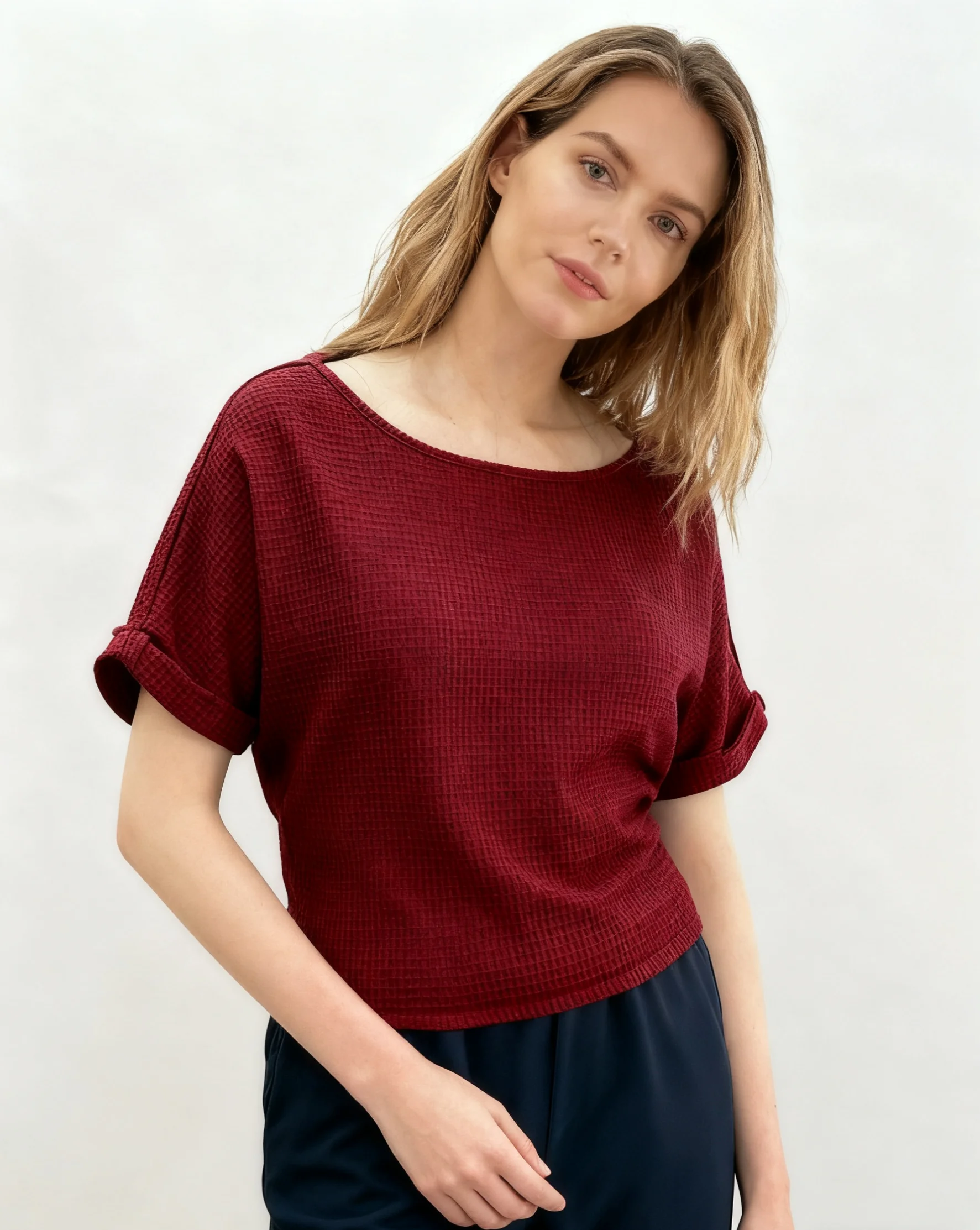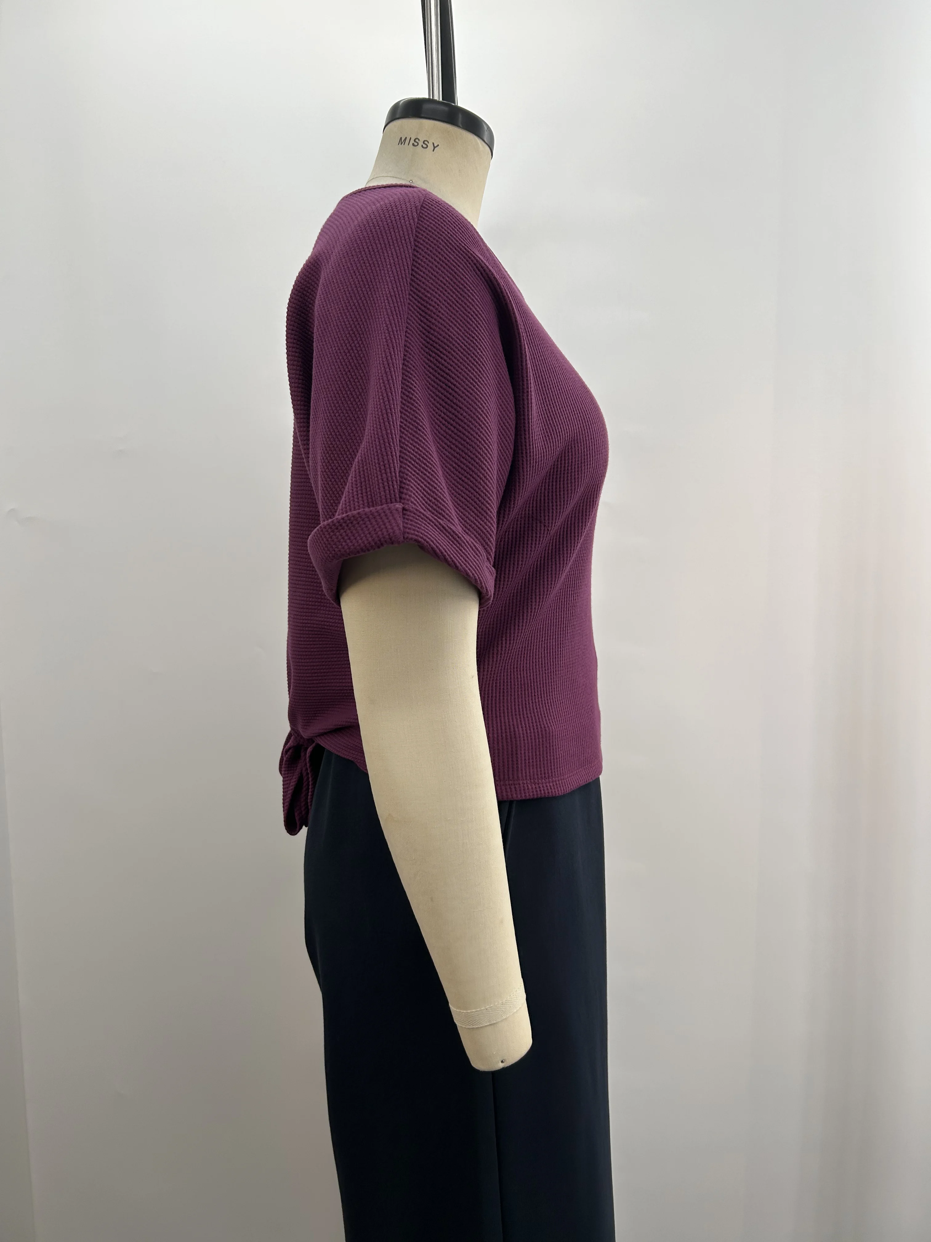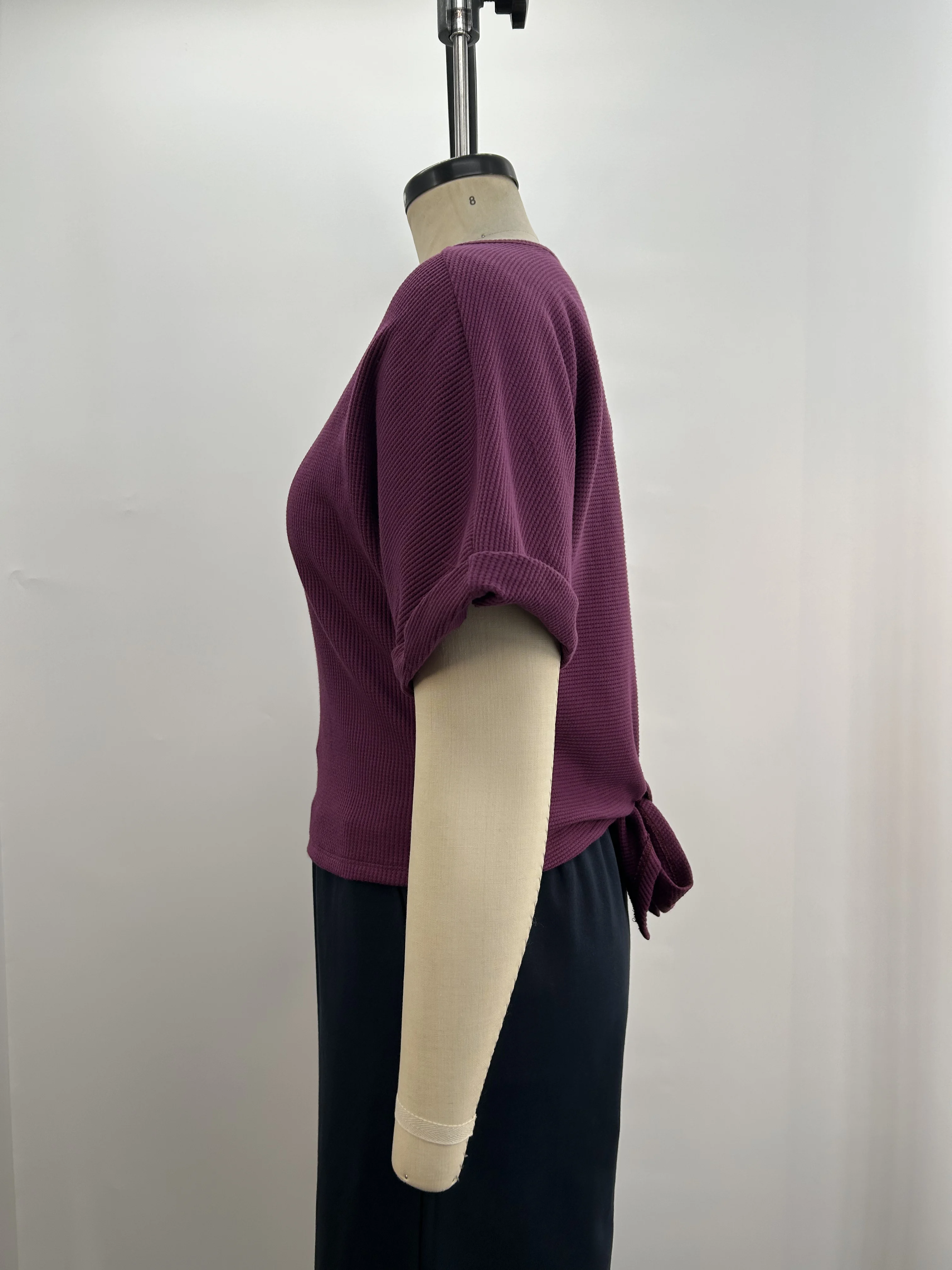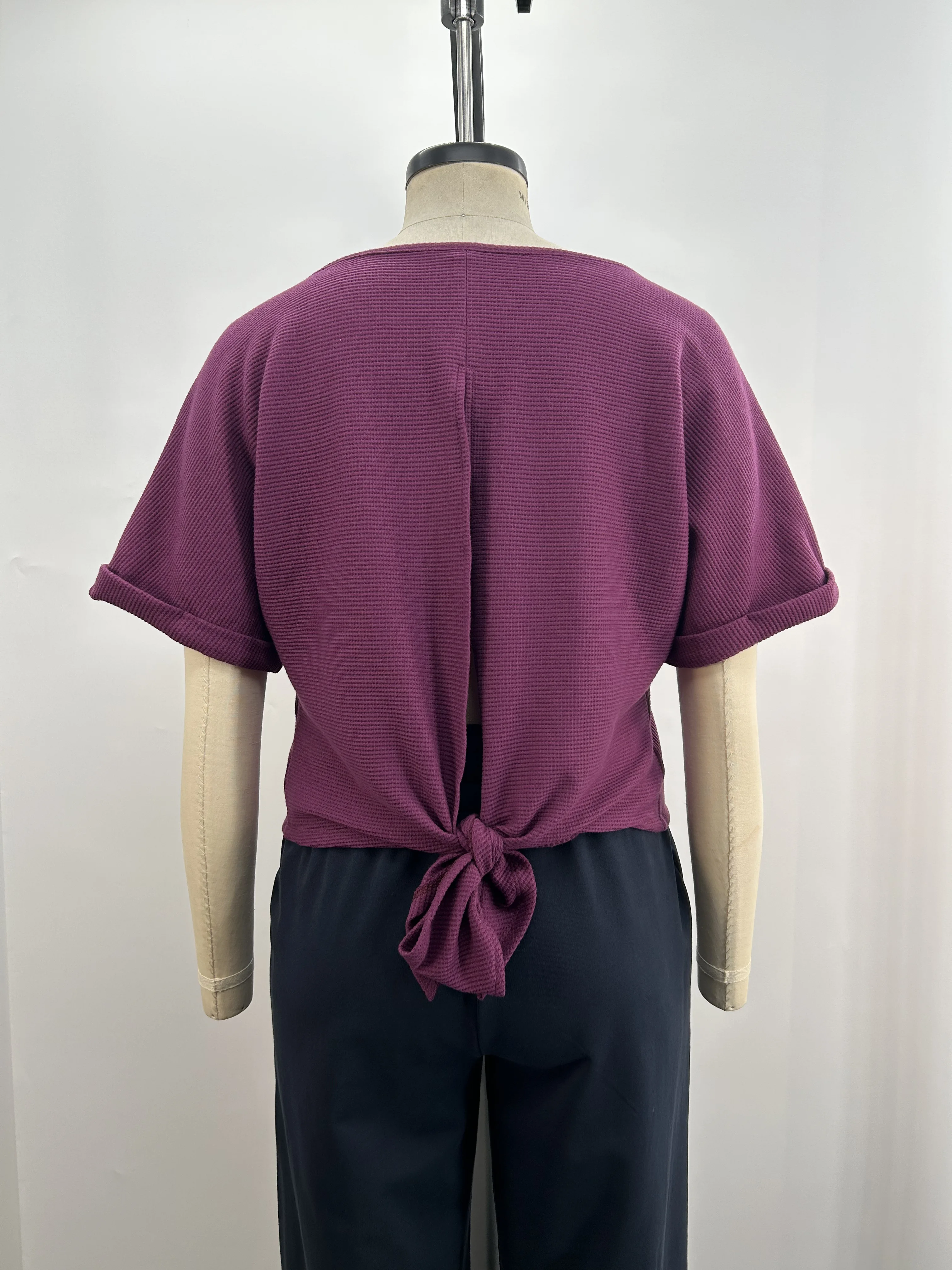 Fashion Women's Short Sleeve Top Solid Color Casual Open Back Tied Short Top for Women
