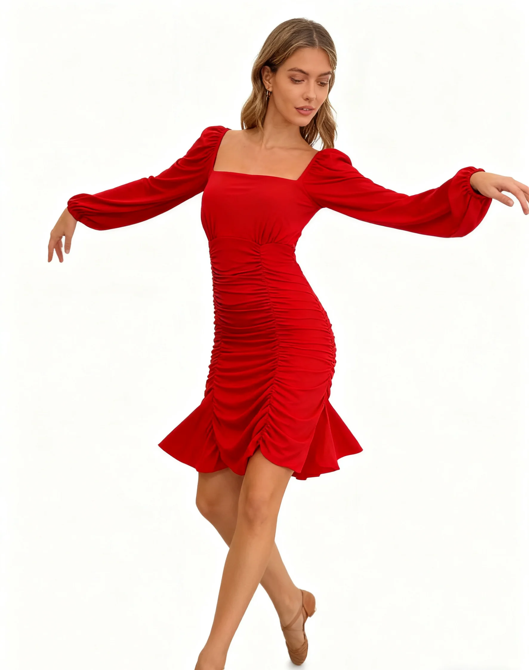 ZYHT 73905 Dusty Rose Off-The-Shoulder Long Sleeve Stretch Jersey Dress Ruched Bodice Floor Length Fish Tail Maxi Dress