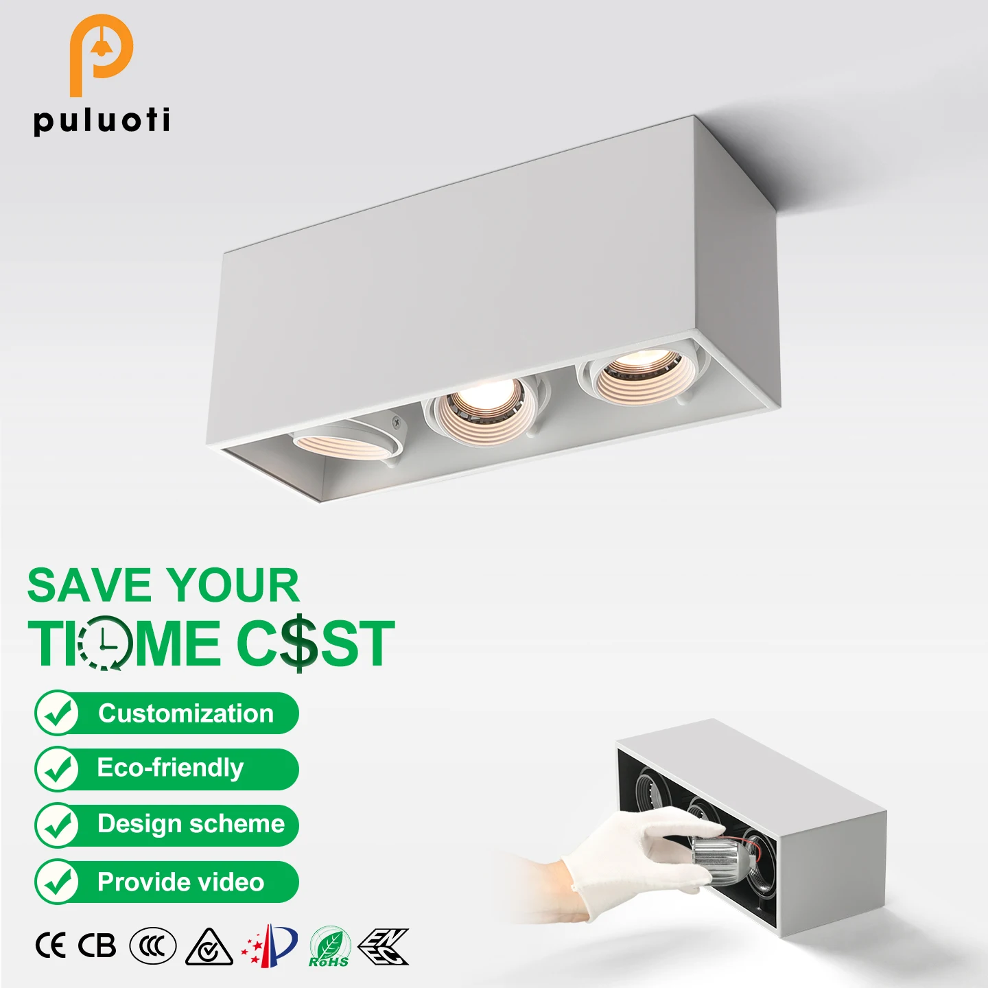 Commercial Indoor Lighting Surface Mounted 30W MR16/GU10 LED Focus Light Dimmable 2700K-5700K Aluminum Spotlight for Living Room