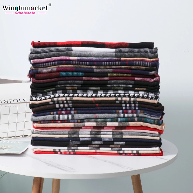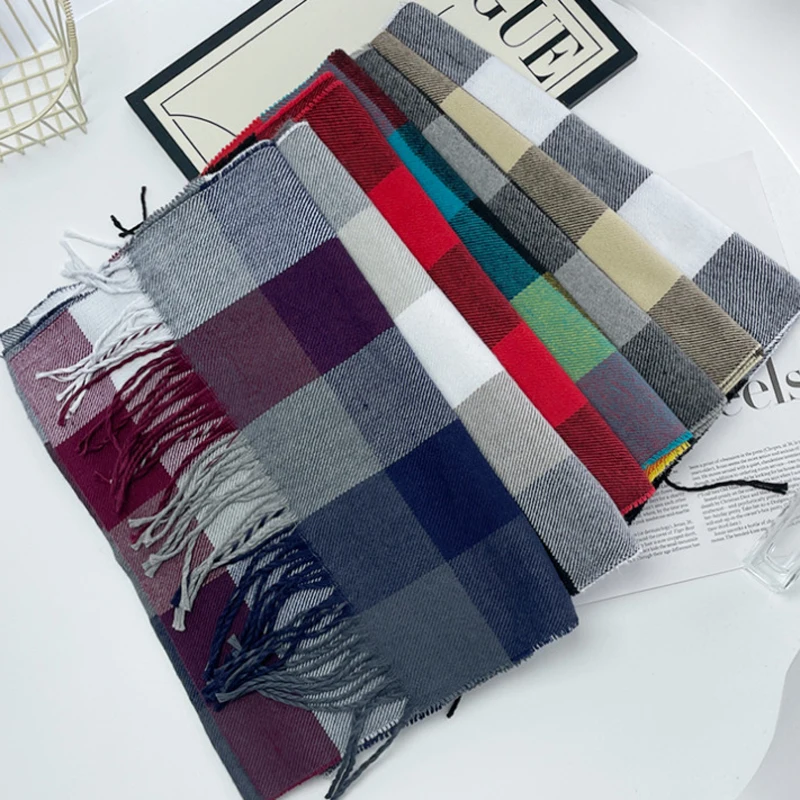 Women Classic Plaid Scarf Soft Warm Winter Tartan Checkered Shawl Wrap with Tassels Cashmere Feel Neck Warmer