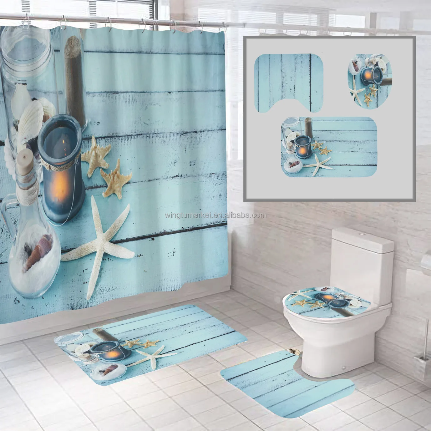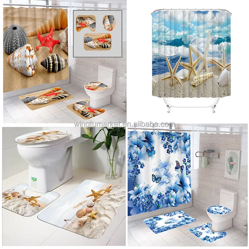 Fashion Wholesale Waterproof Non-slip Custom Shower Curtains Bathroom Sets With Shower Curtain and Rugs