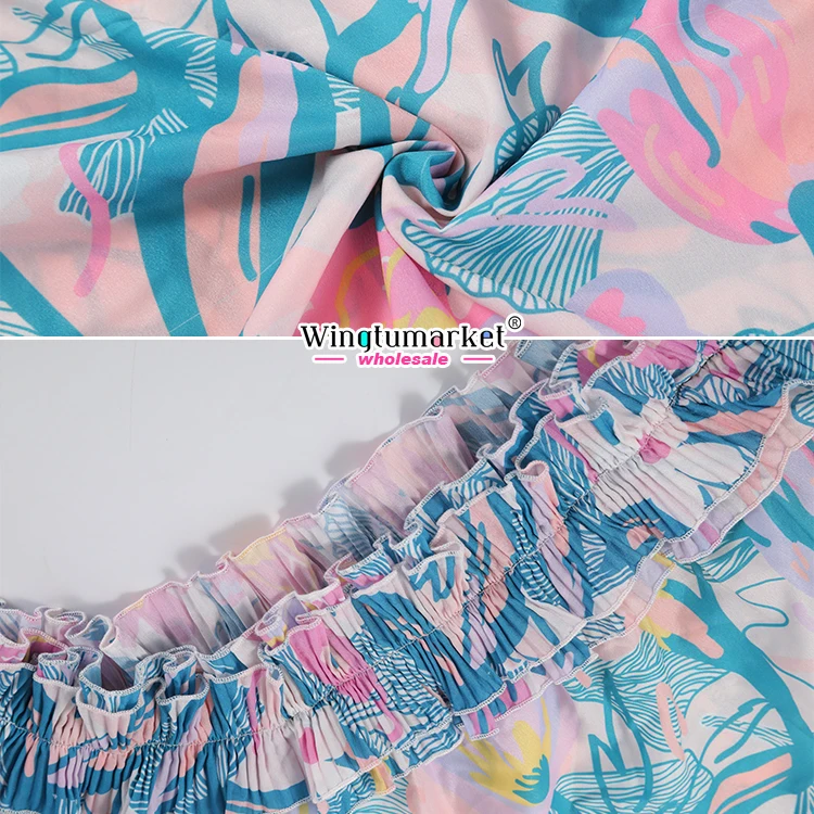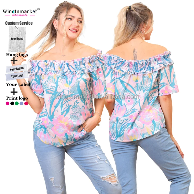 Casual Blouse Woman Custom Print Lady Elegant Tops Ruffle off Shoulder Summer Floral Short Sleeve Women Blouses