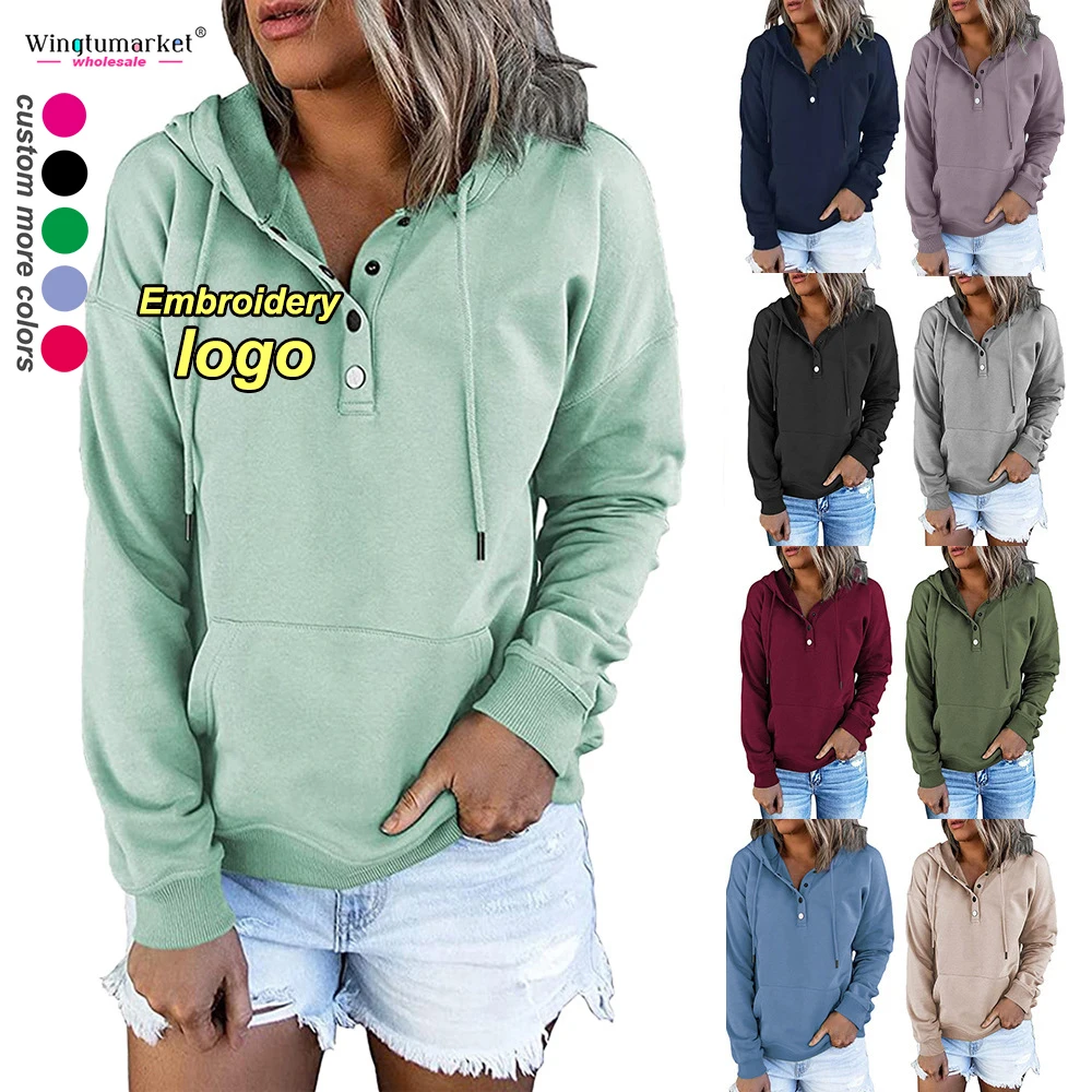 Custom Embroidery Hoodie Design Hooded Sweatshirt Casual Blank Black Cotton Terry Long Sleeve Manufacturing Hoodies for Women