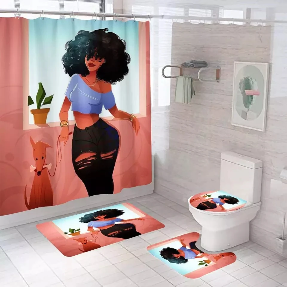 Custom Print Boho Designers Waterproof Rug Mat Aztec Christmas Rings Shower Curtains Set Bathroom Sets Shower Curtain Set 4 Pcs