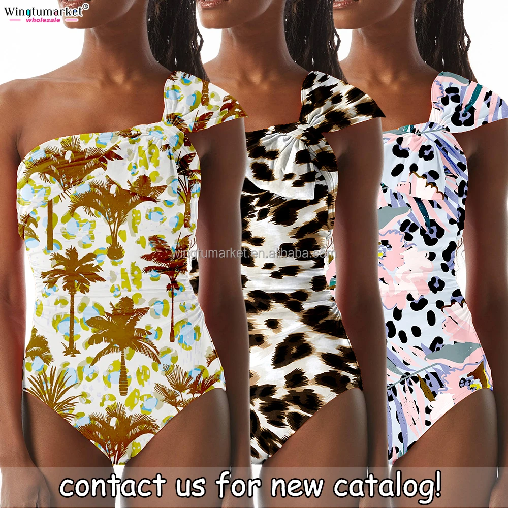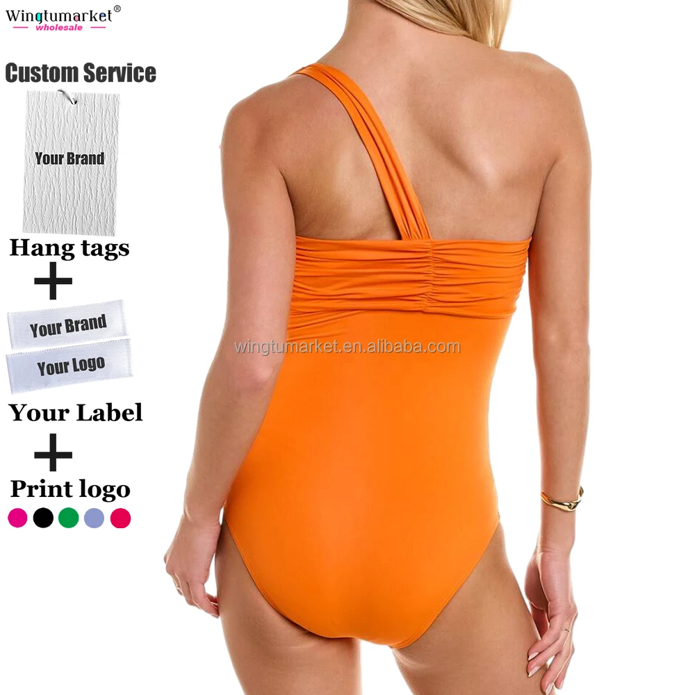 Custom Design Swimsuits Bikinis Monokini Ruched Bow Shoulder One Piece Swimsuit Sexy Swimwear Beachwear for Women