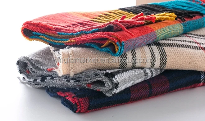Winter Cashmere Ethnic Scarves Shawls Checked Unisex Green Red Plaid Faux Fur Wool Christmas Tassels Scarf for Women Stylish
