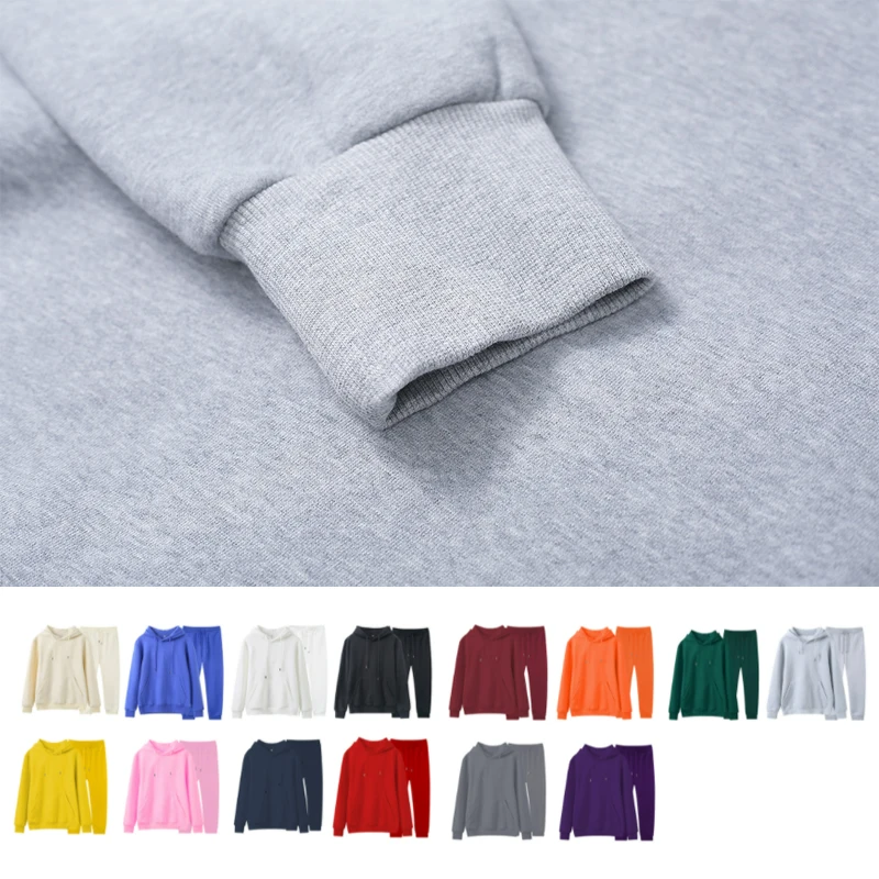 Wholesale 330 Gsm Fleece Set Unisex Kangaroo Pocket Cotton Sweatshirt Fitness Pullover Sweatsuit Gym Hoodie Jogger Pants Sets