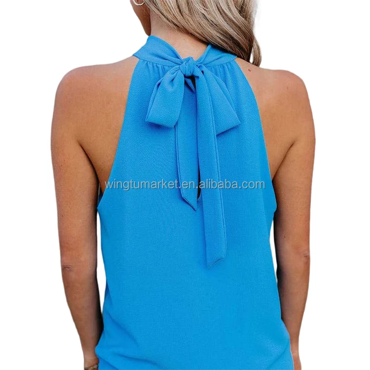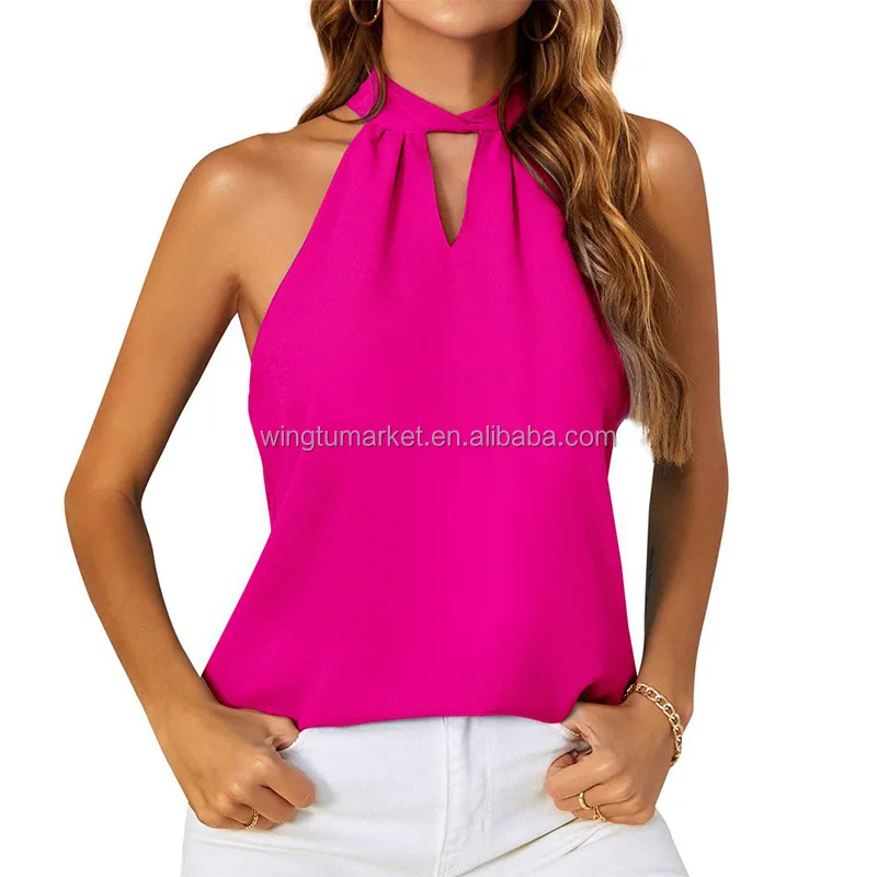 Wholesale Summer Textured Crepe Chiffon Sleeveless Blouse Sexy Casual Halter White tank Tops Red Camisole tank Top Women