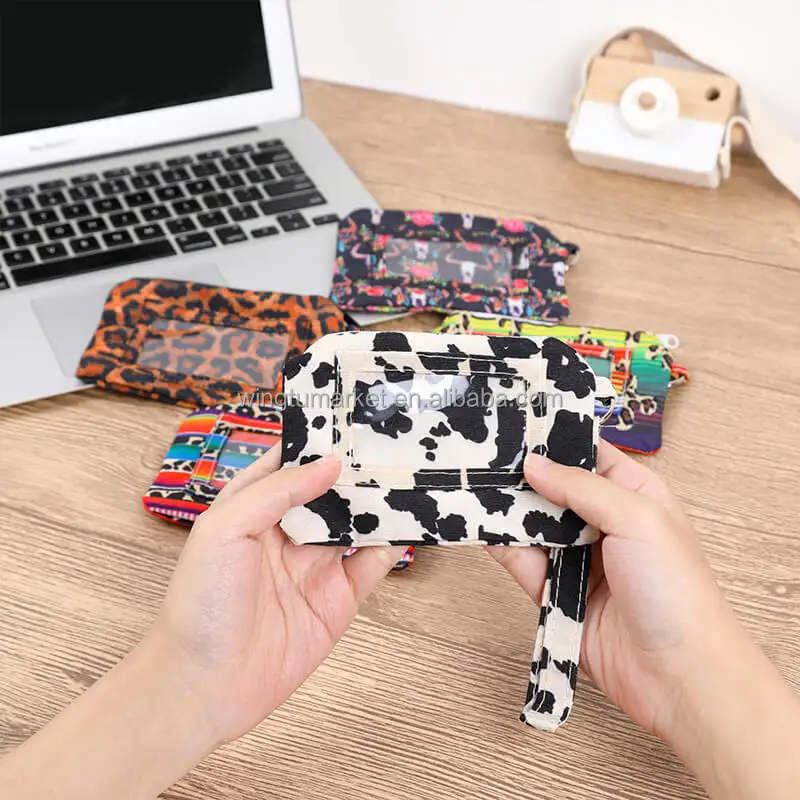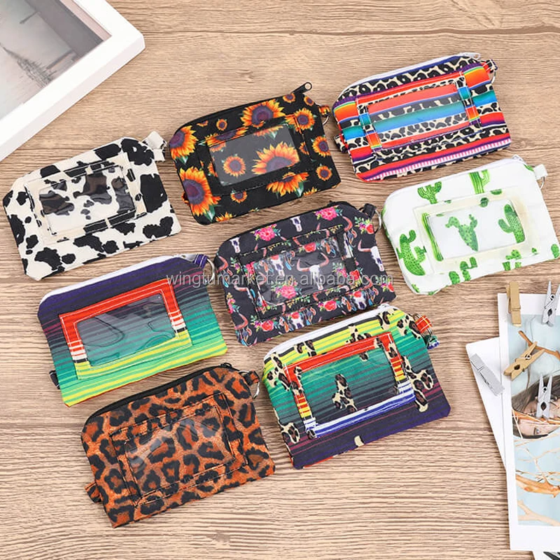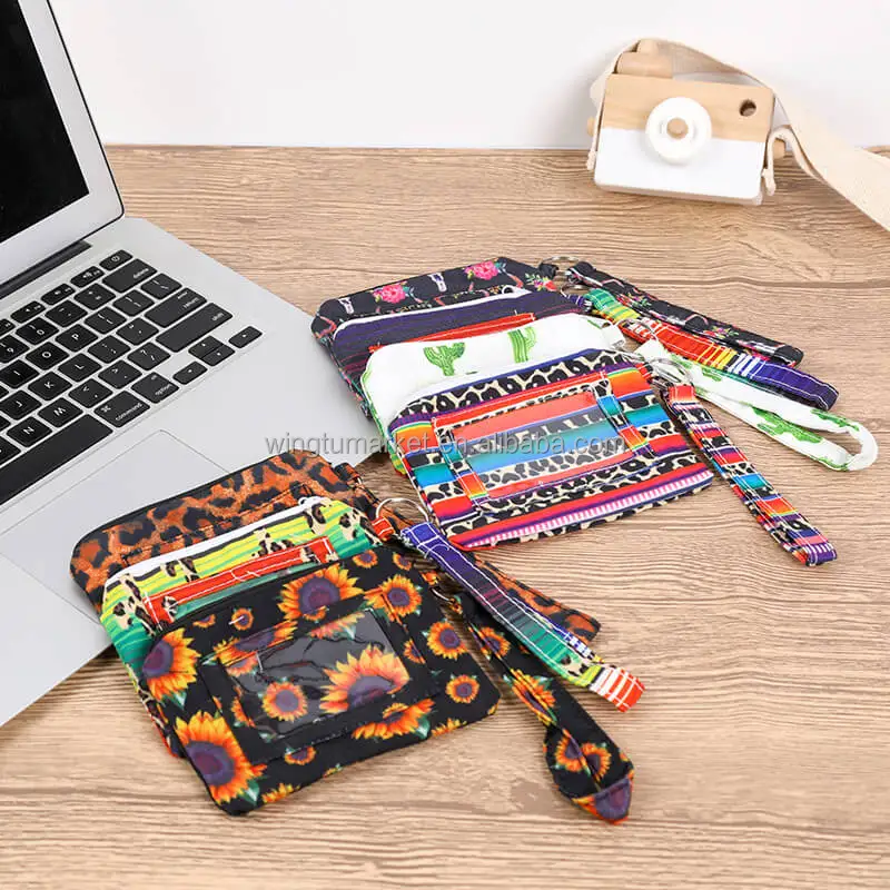 Wholesale Aztec Women Pouch Bag Leopard rainbow Bull Strap Canvas Credit Id Card Holder Wristlet Keychain Graphics Storage Bags