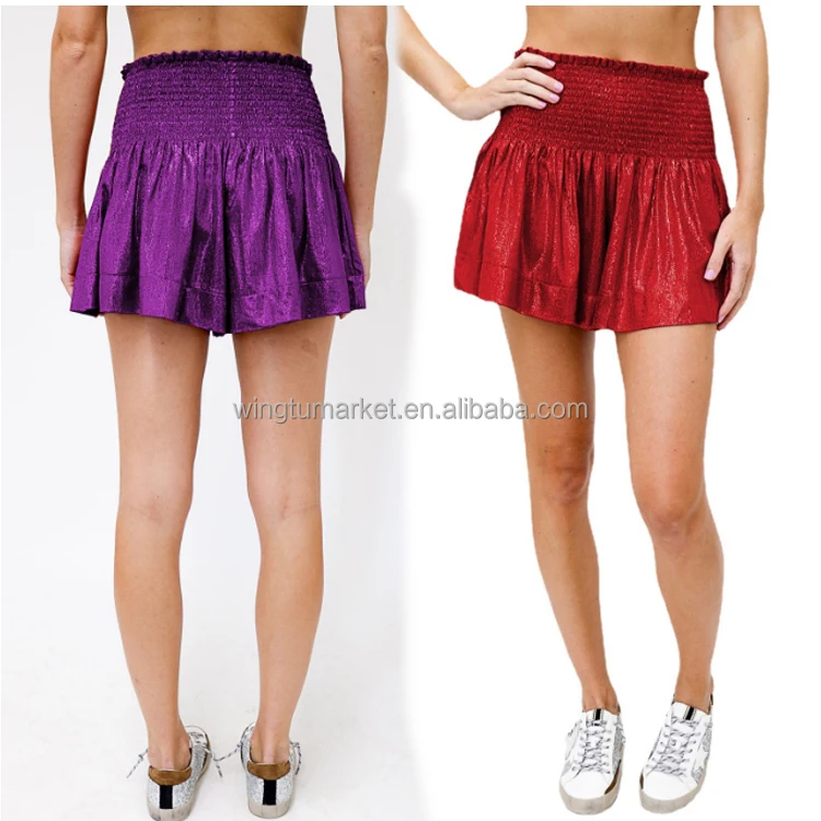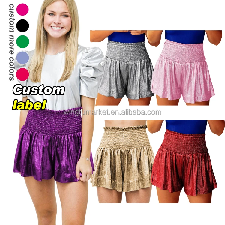 Wholesale Sequin Sports Workout Running Draped Loose High Waist Glitter Metallic Smocked Elastic Gym Shorts for Women