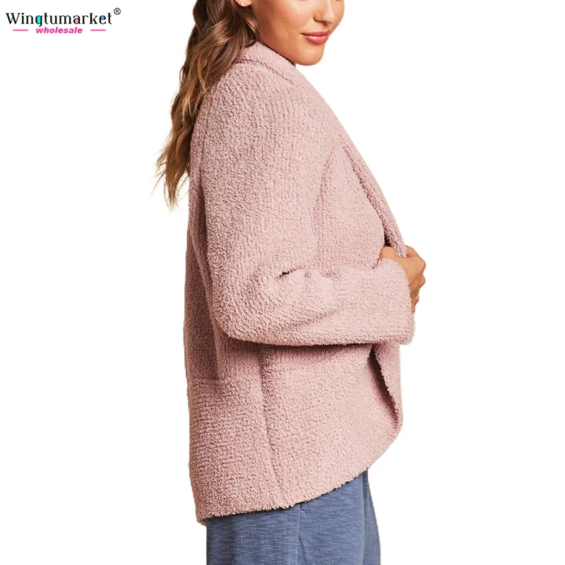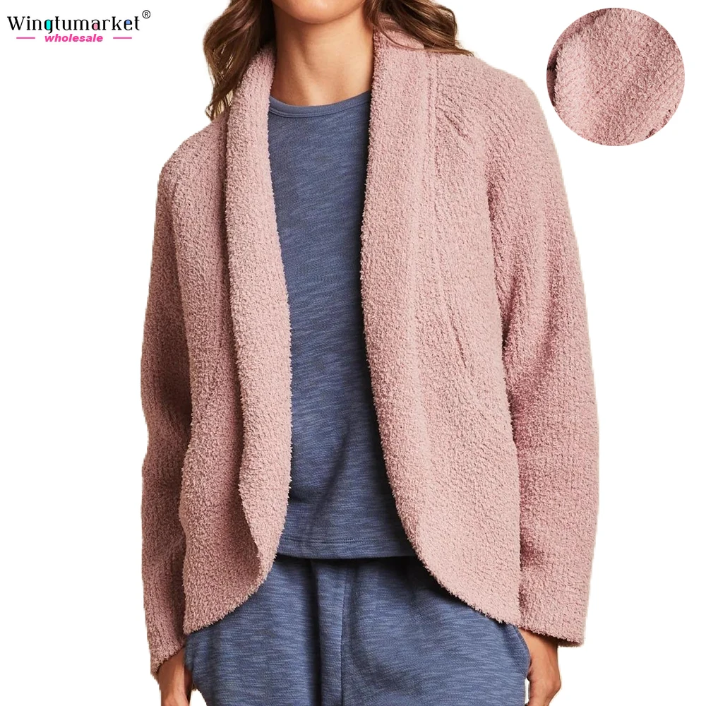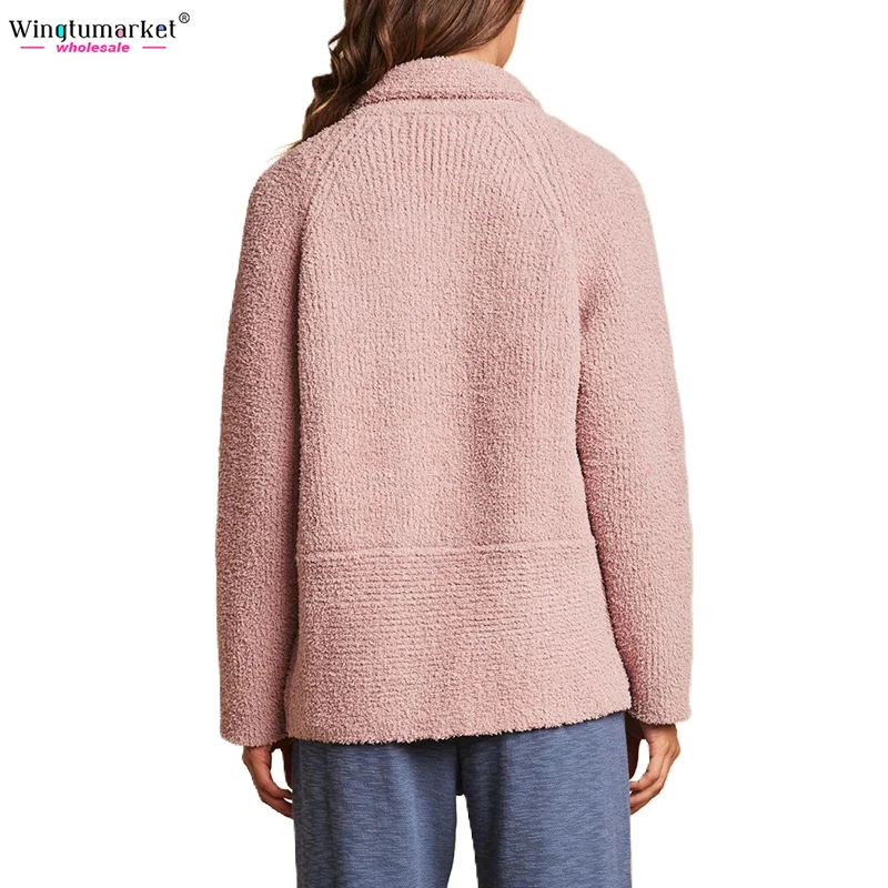 Custom Knitted Cardigans Sweater Ladies Rib Microfiber Soft Warm Raglan Long Sleeves Fuzzy Oversized Cardigan Sweaters Women