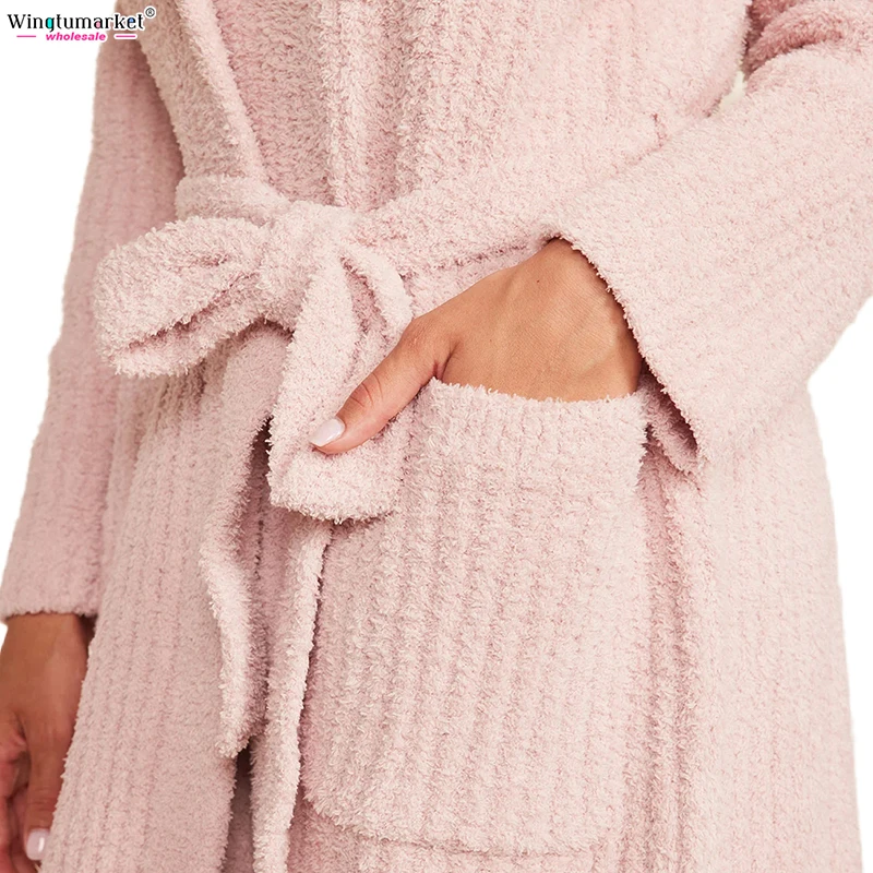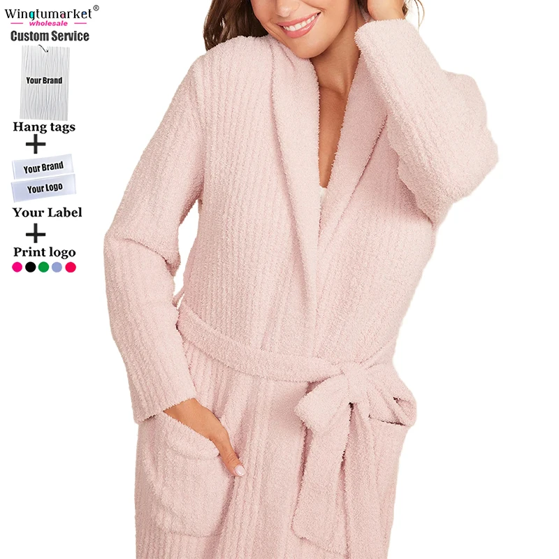 Wholesale Ribbed Microfiber Bathrobe Luxury Robe Elegant Bridal Soft Winter Cozy Fluffy Fur Designer Custom Bath Robes Women