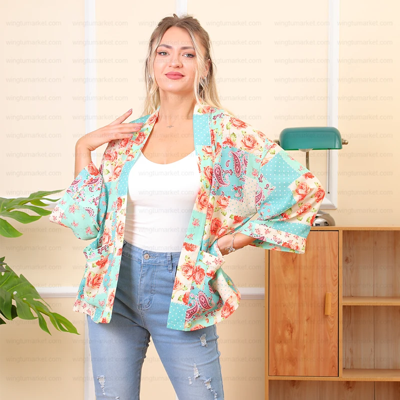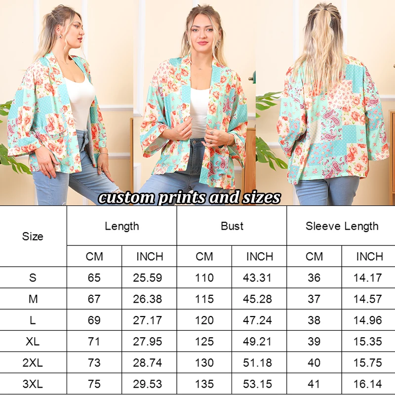Vintage Women Silk Kimono Beach Cover up Short Cardigan Polka Dot Color Block Summer Floral Custom Paisley Print Kimonos Ladies