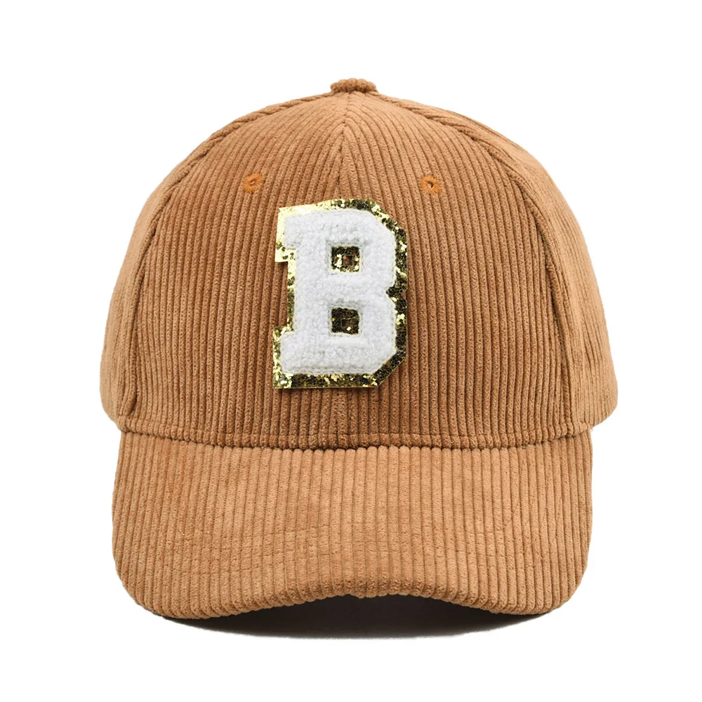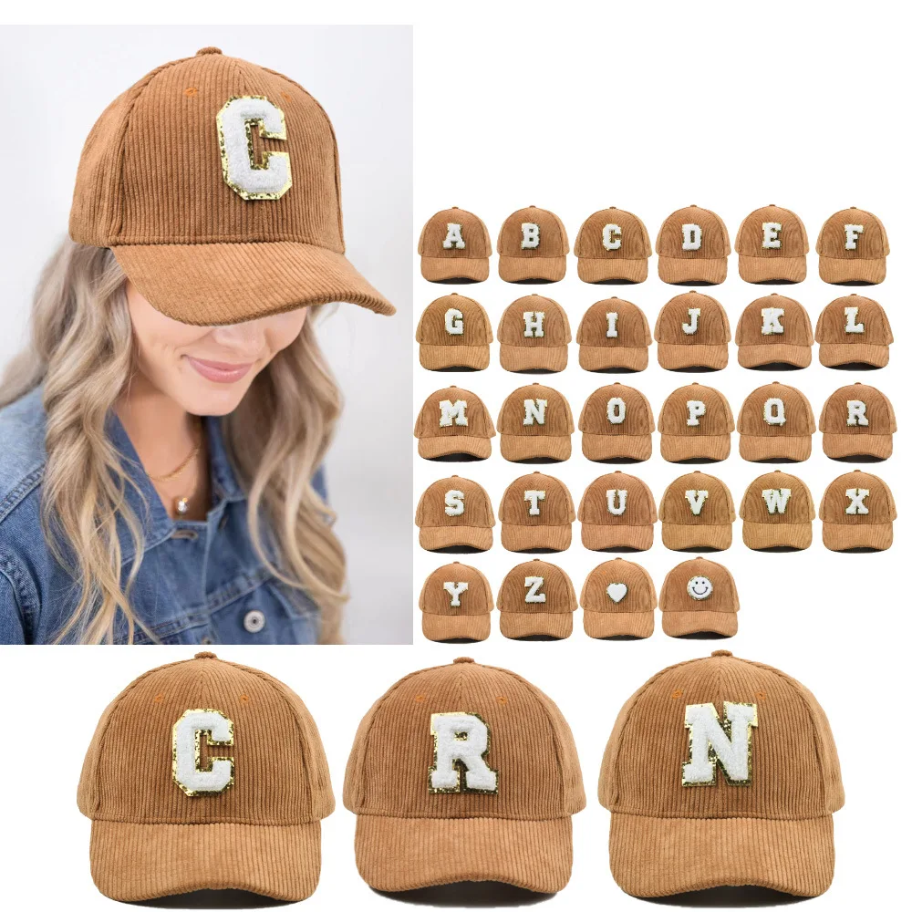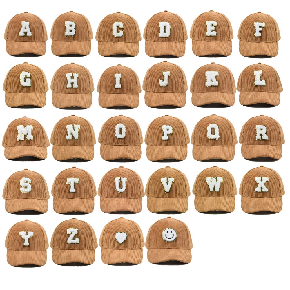 Custom logo Adult Baseball Cap Embroidered Letter A-Z Chenille Patches Smiling Heart Brown Corduroy Peaked Cap Baseball Cap Hat