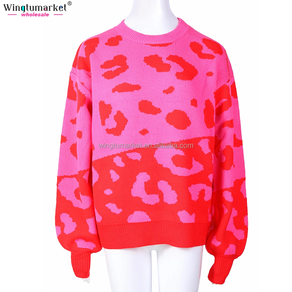 Wholesale Winter Knit Sweater Jumper Warm Cozy Long Sleeve Leopard Knitted Sweaters for Women