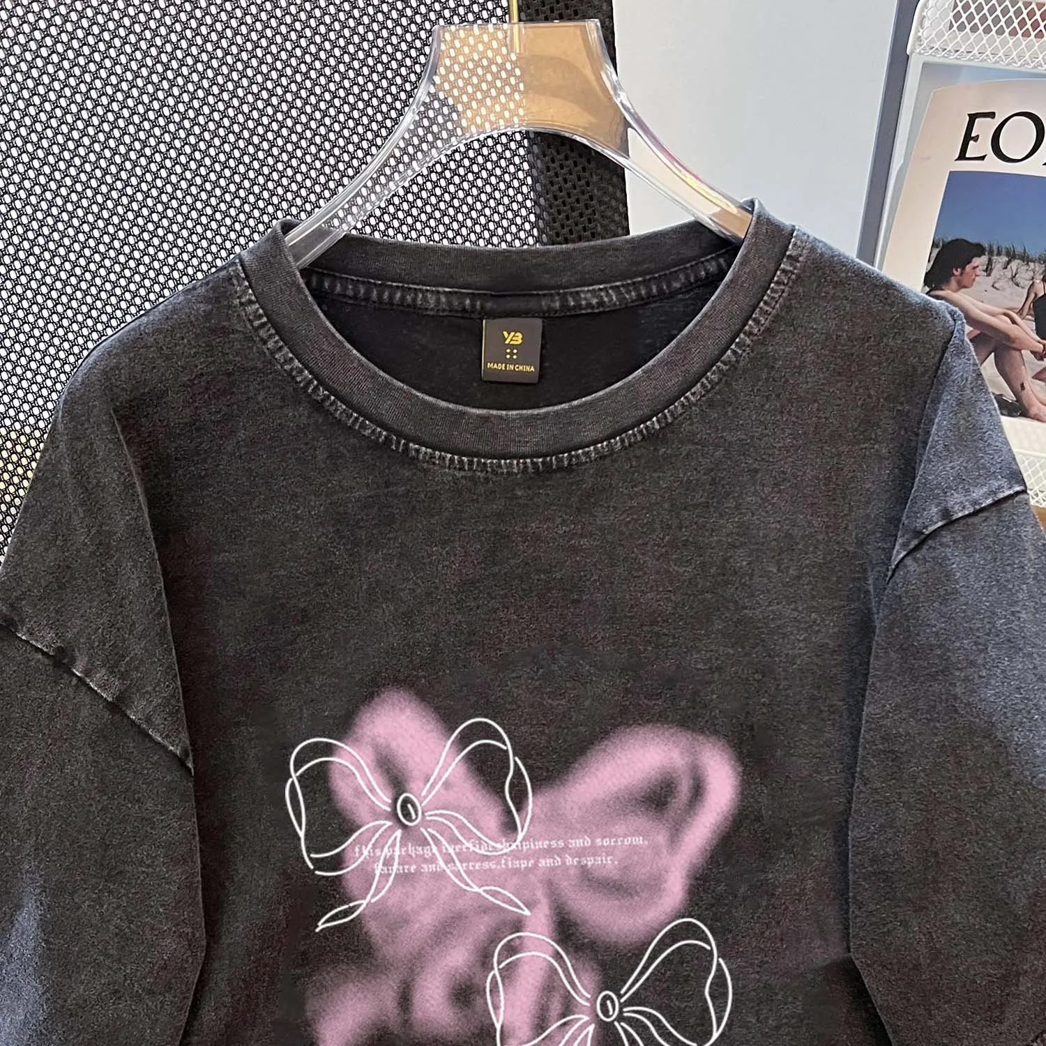 China V-Times Ins Hip-Hop National Trend Top High-End Butterfly Short Sleeve T-Shirt 280 Grams
