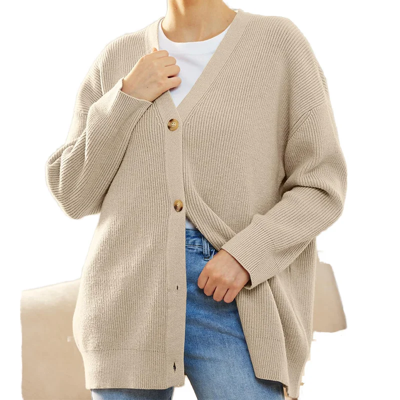 China V-Times Women's Solid Cardigan Sweater Coat Autumn Loose Casual Knitted Jacket Regular Sleeves V-neck Breathable