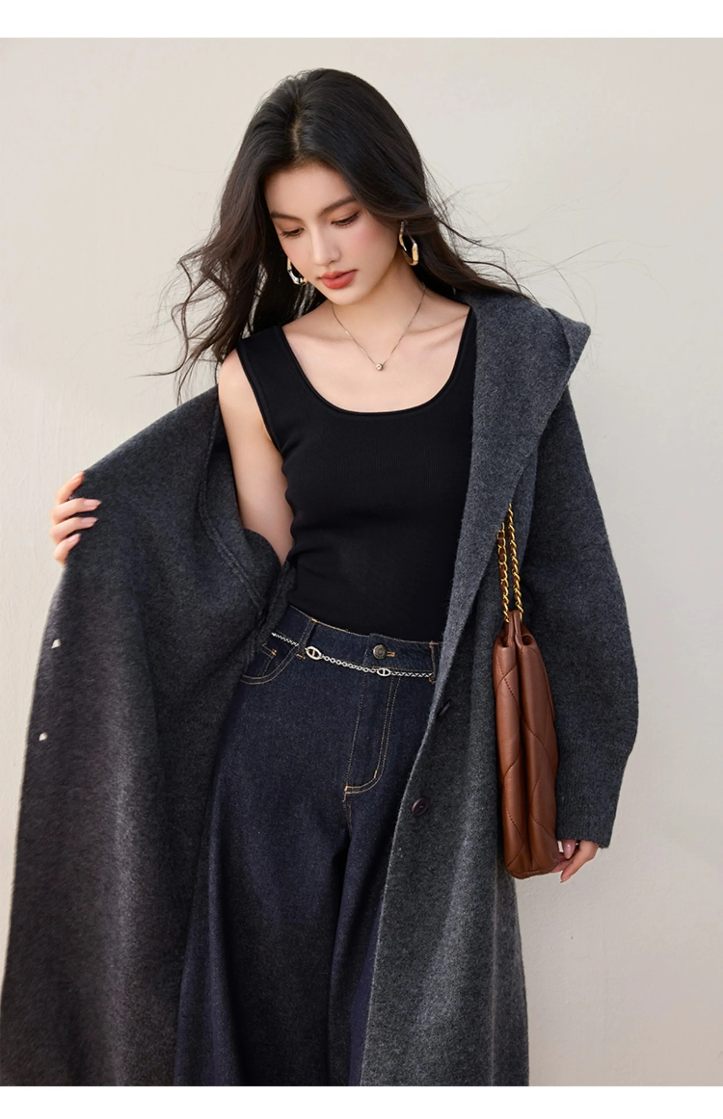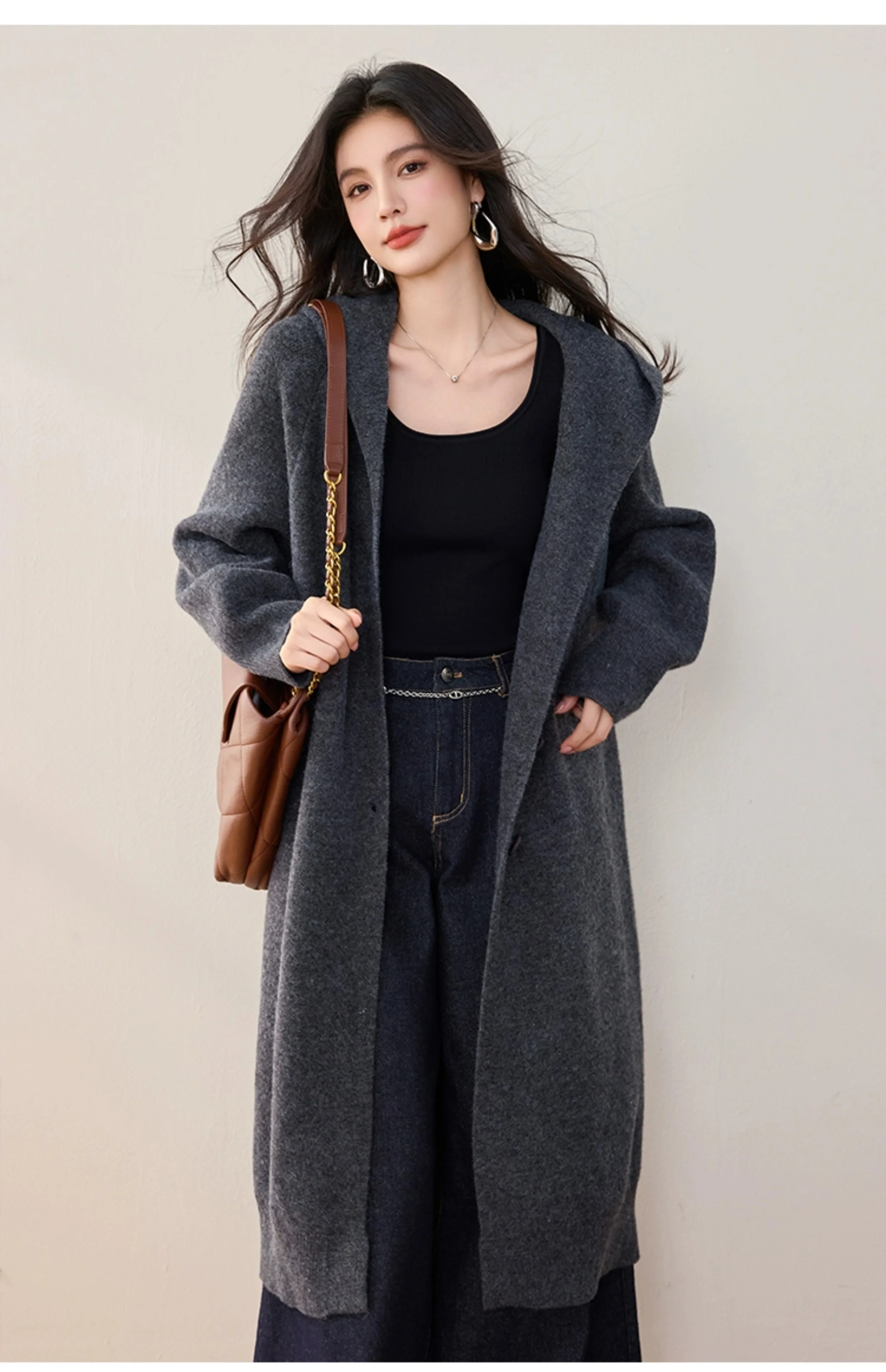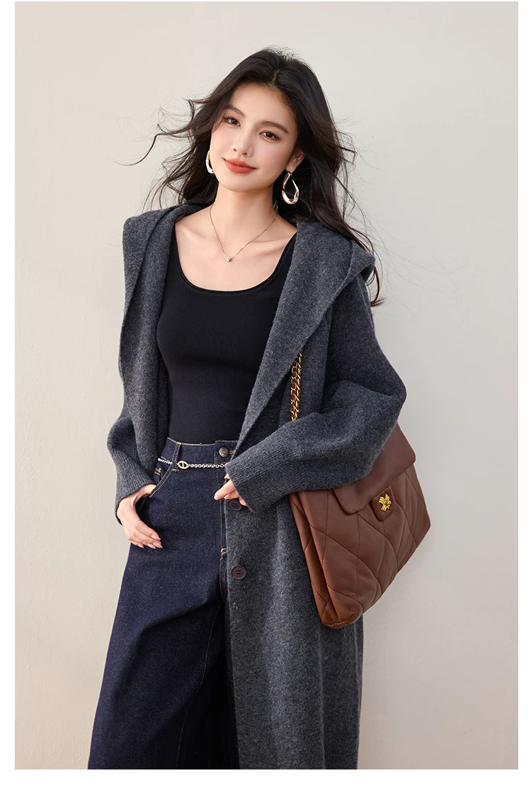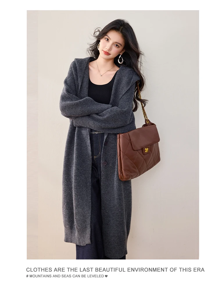 China V-times 2026 Winter New Casual Hooded Knitted Sweater Knitwear Womens Loose Mid-Length Womens Clothing