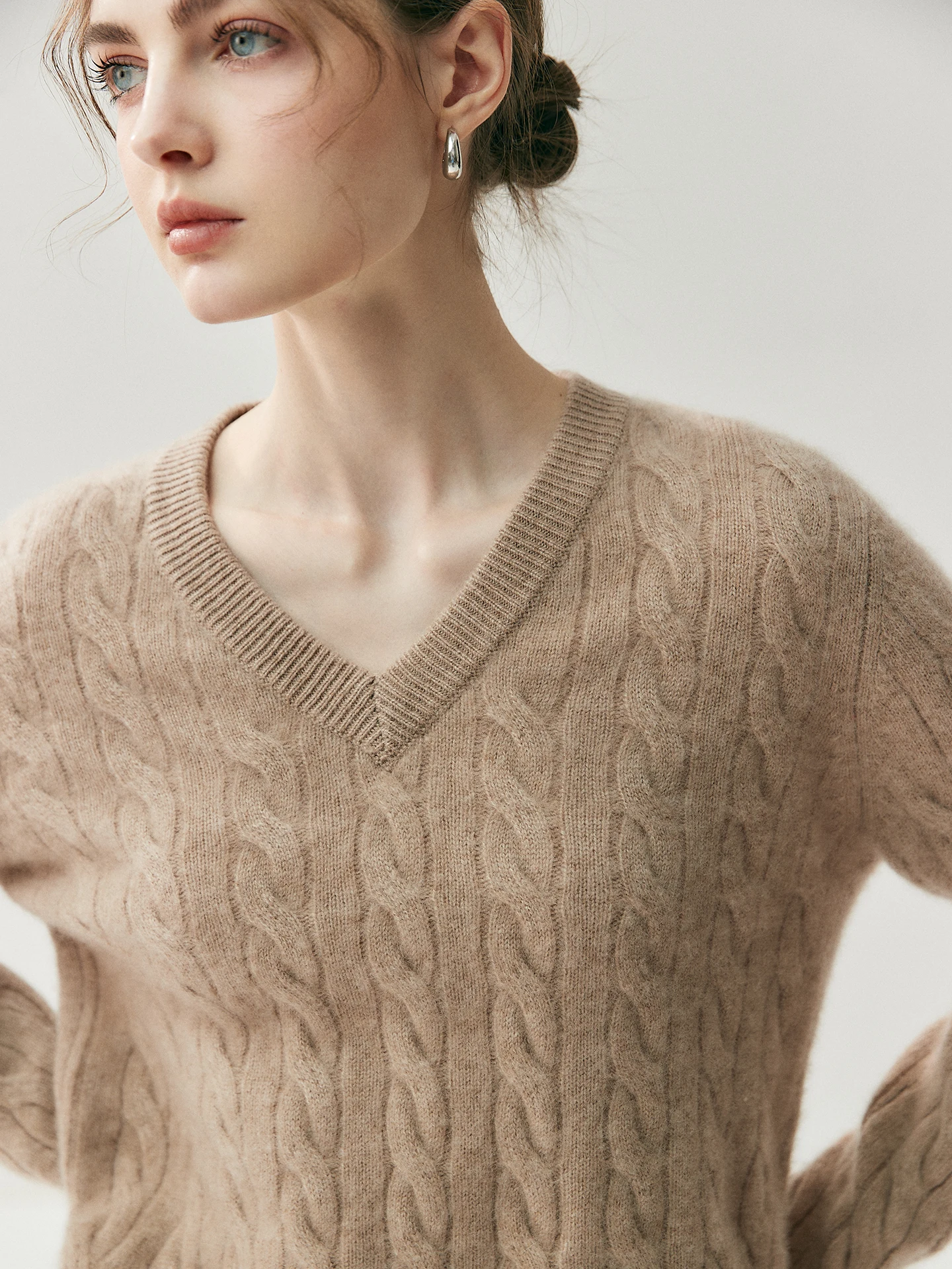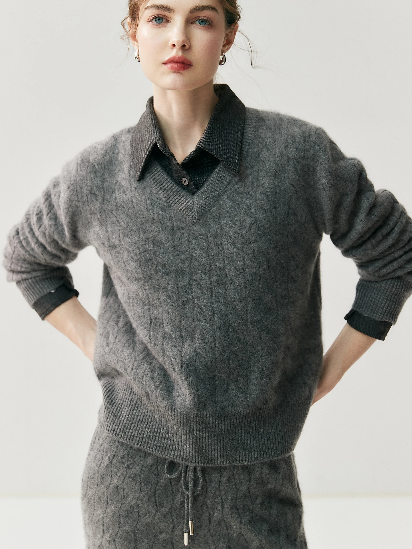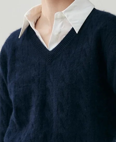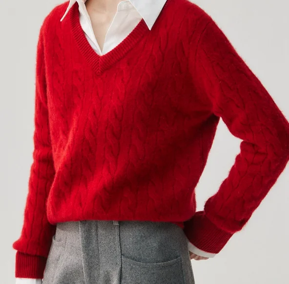 High-End Cashmere Sweater for Women V-Neck Cable Knit Loose Standard Autumn Fashion Casual