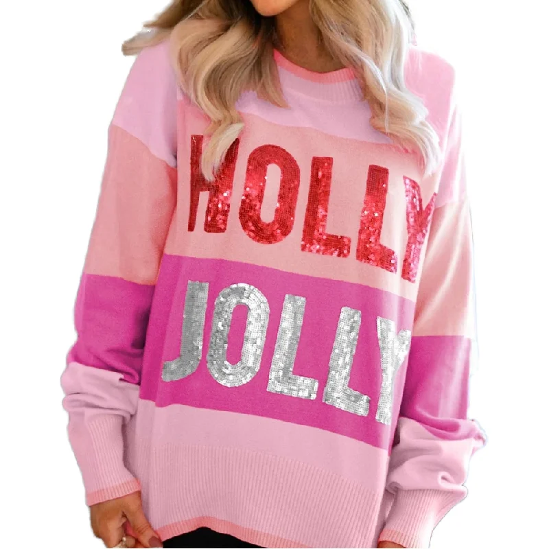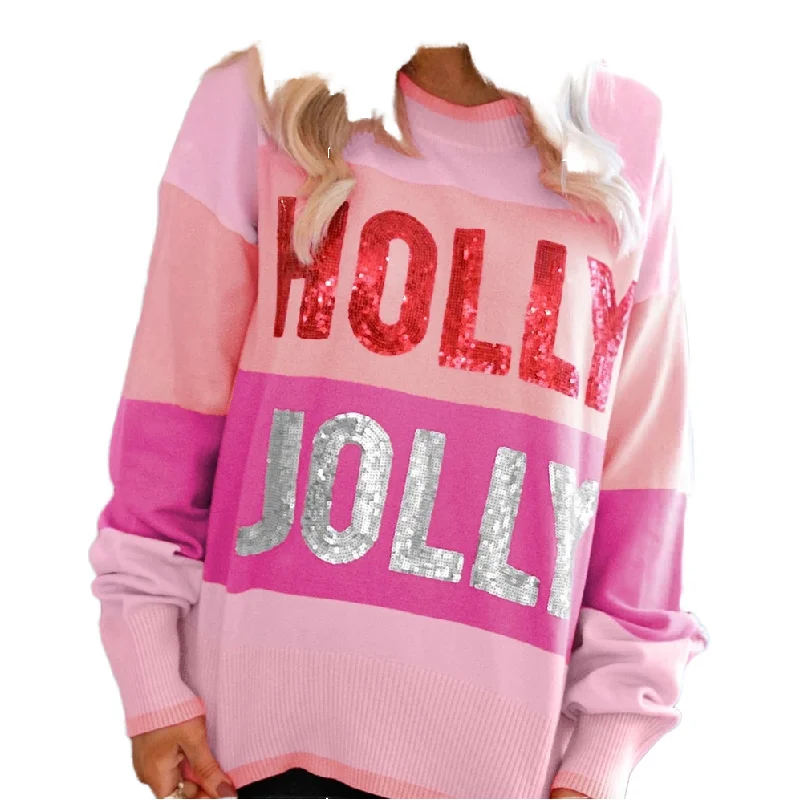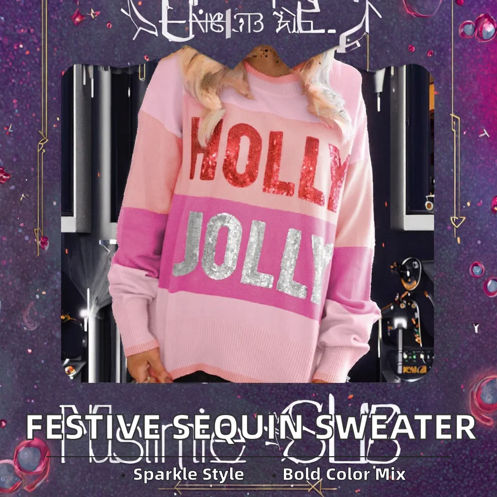 China V-times Wholesale Winter Casual Knitted Christmas Color Block Crew Neck Sweater Women
