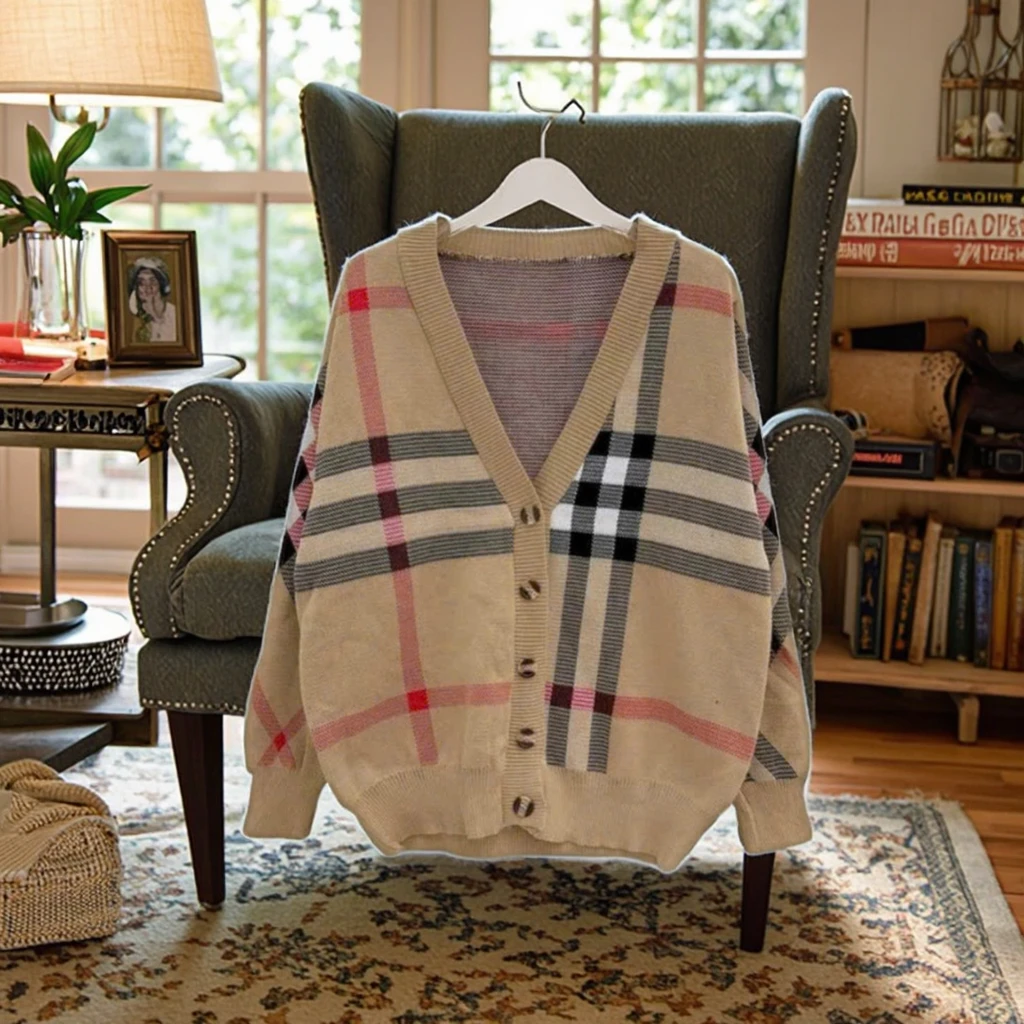 China V-Times 2026 Winter Sweet Oversize Classic Cardigan Single Breasted Sweater Ribbing V Neck Long Sleeve