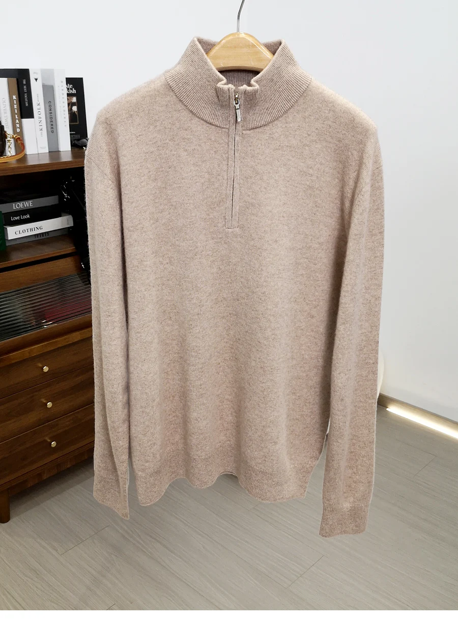 China V-Times Men's Clothing Series Cashmere Autumn Winter Stand Collar Casual Warm Full Sleeve Knitwear Old Money