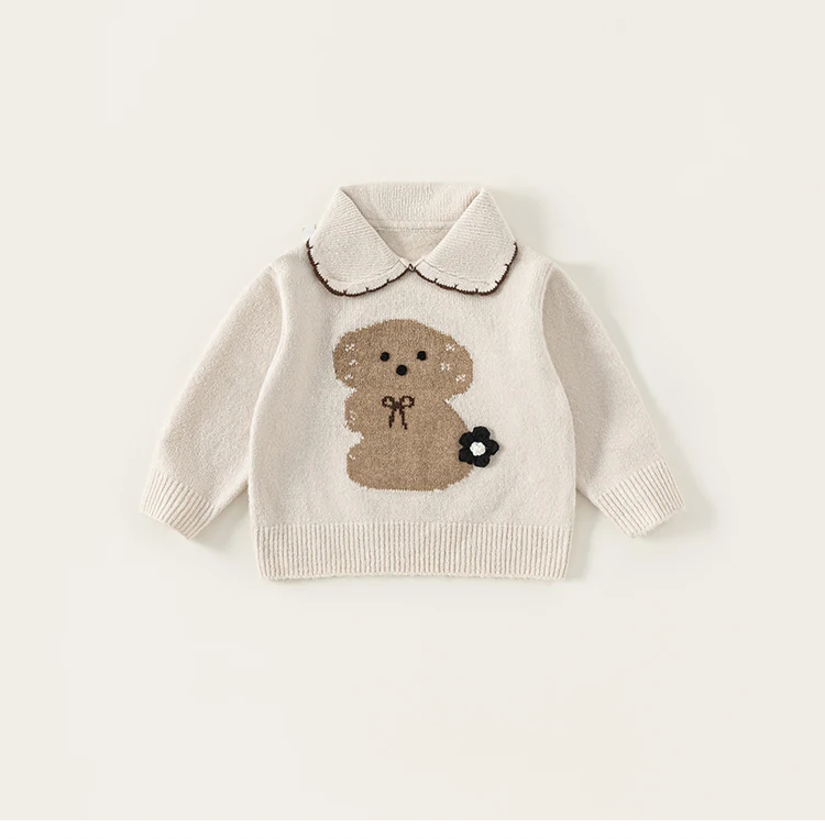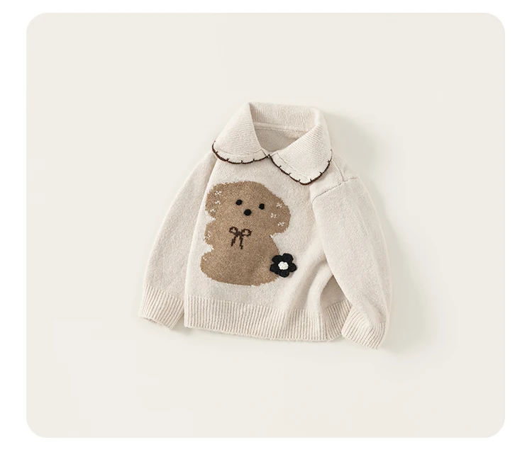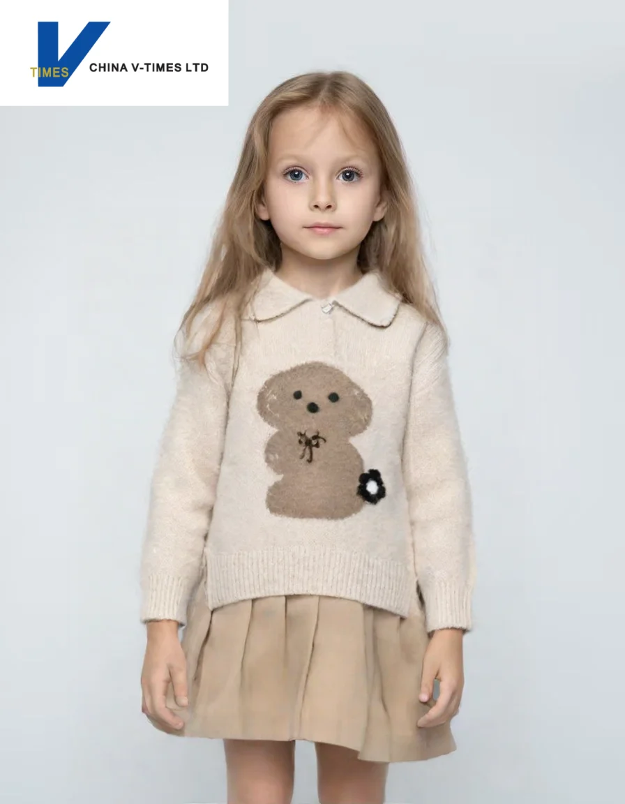 China V-Times 2026 Autumn Winter Girls' Sweater Trendy Jacquard Knitwear for Babies Warm Children's Clothing for the New Season