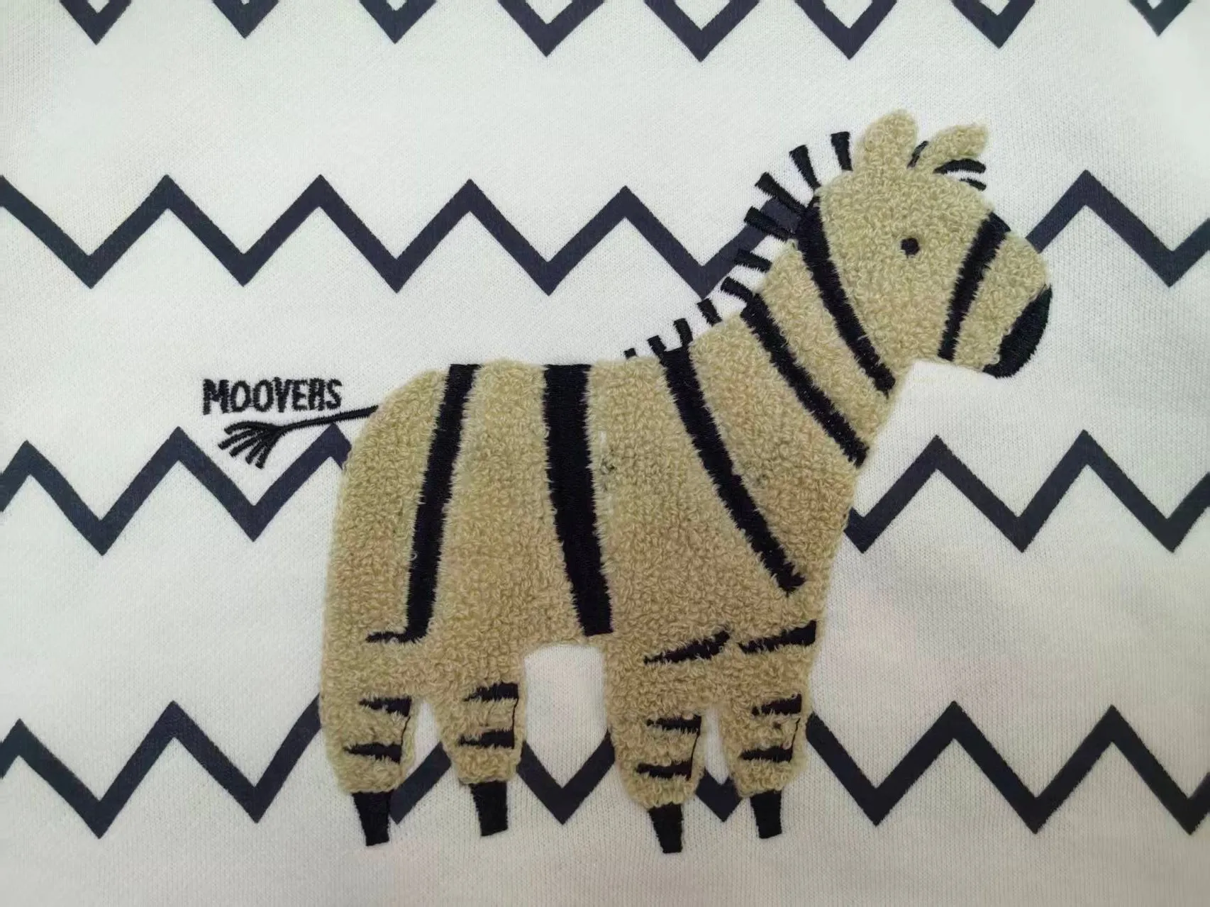 Whimsical Zebra Geometric-Themed White Base Black Wavy Fully Printed Cartoon Print Embellished Eco-Friendly 3D Girls'