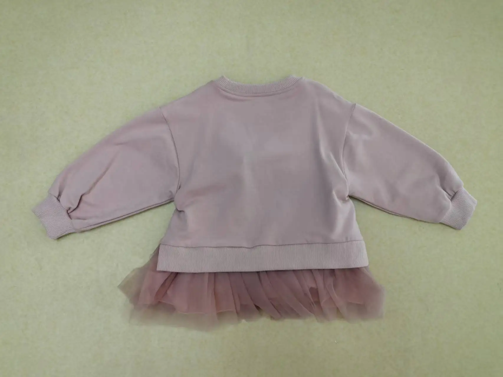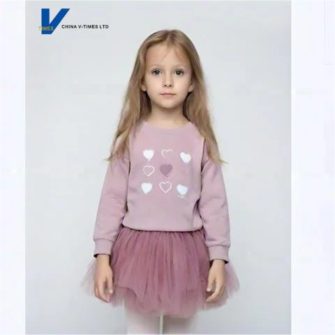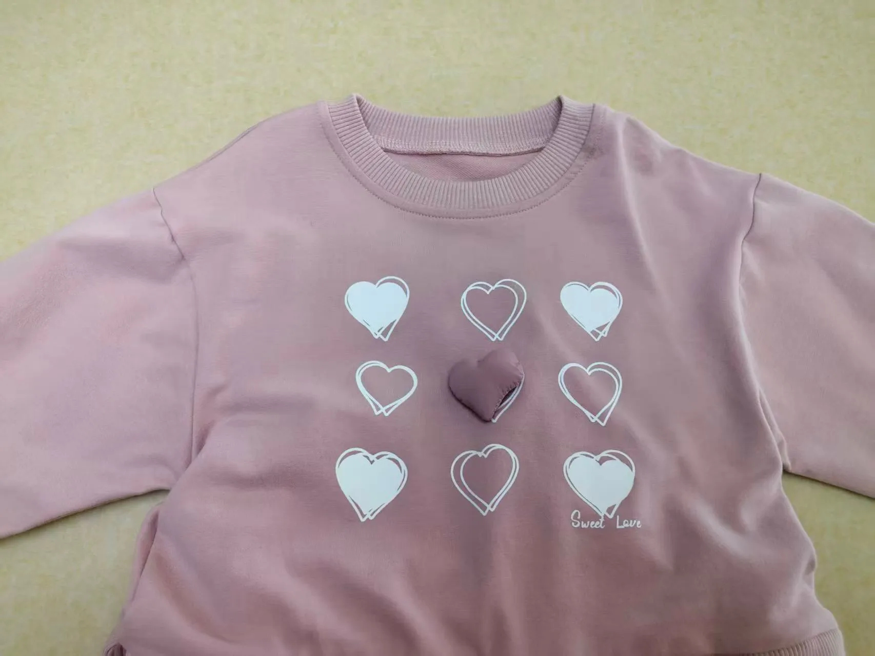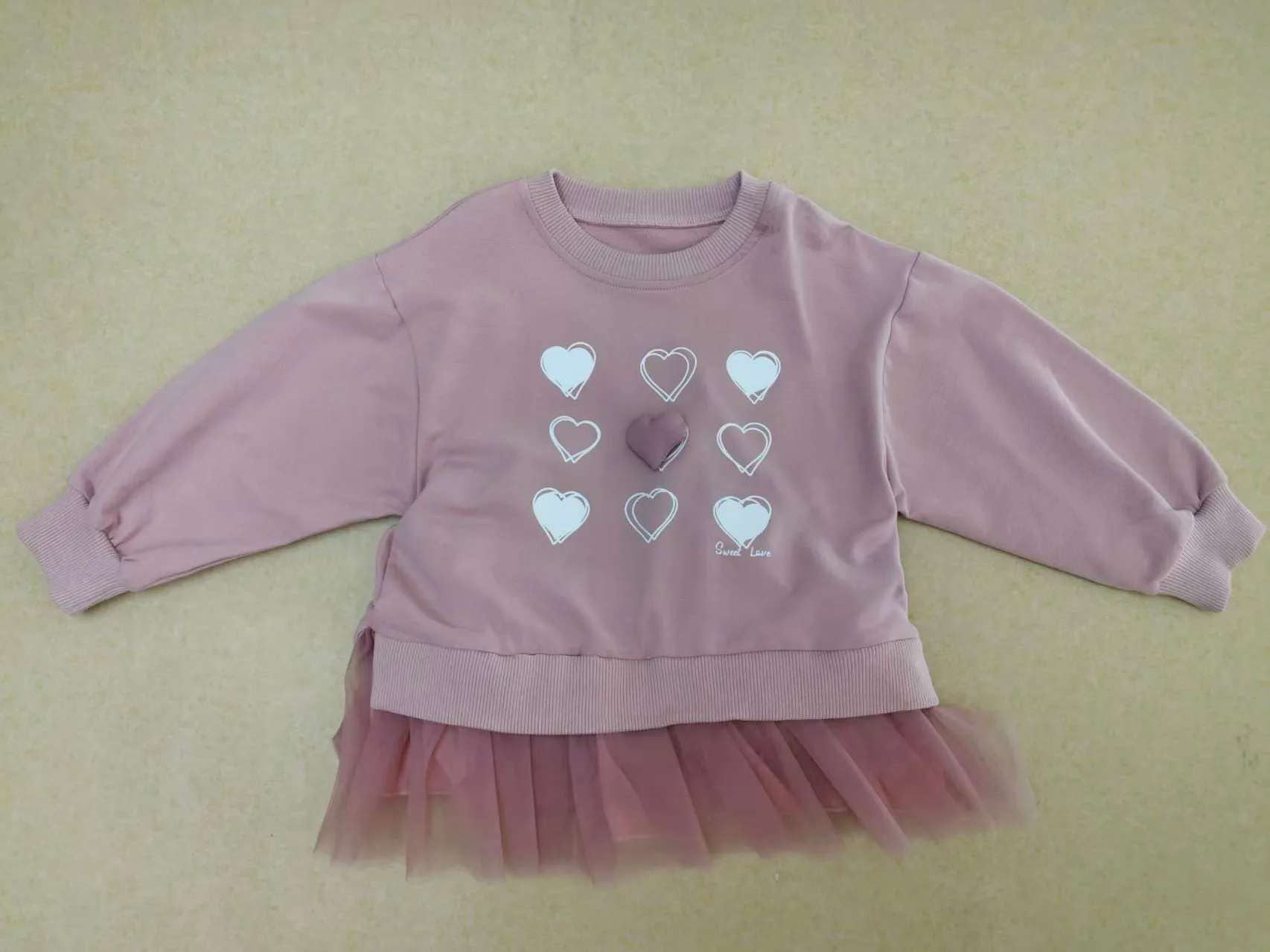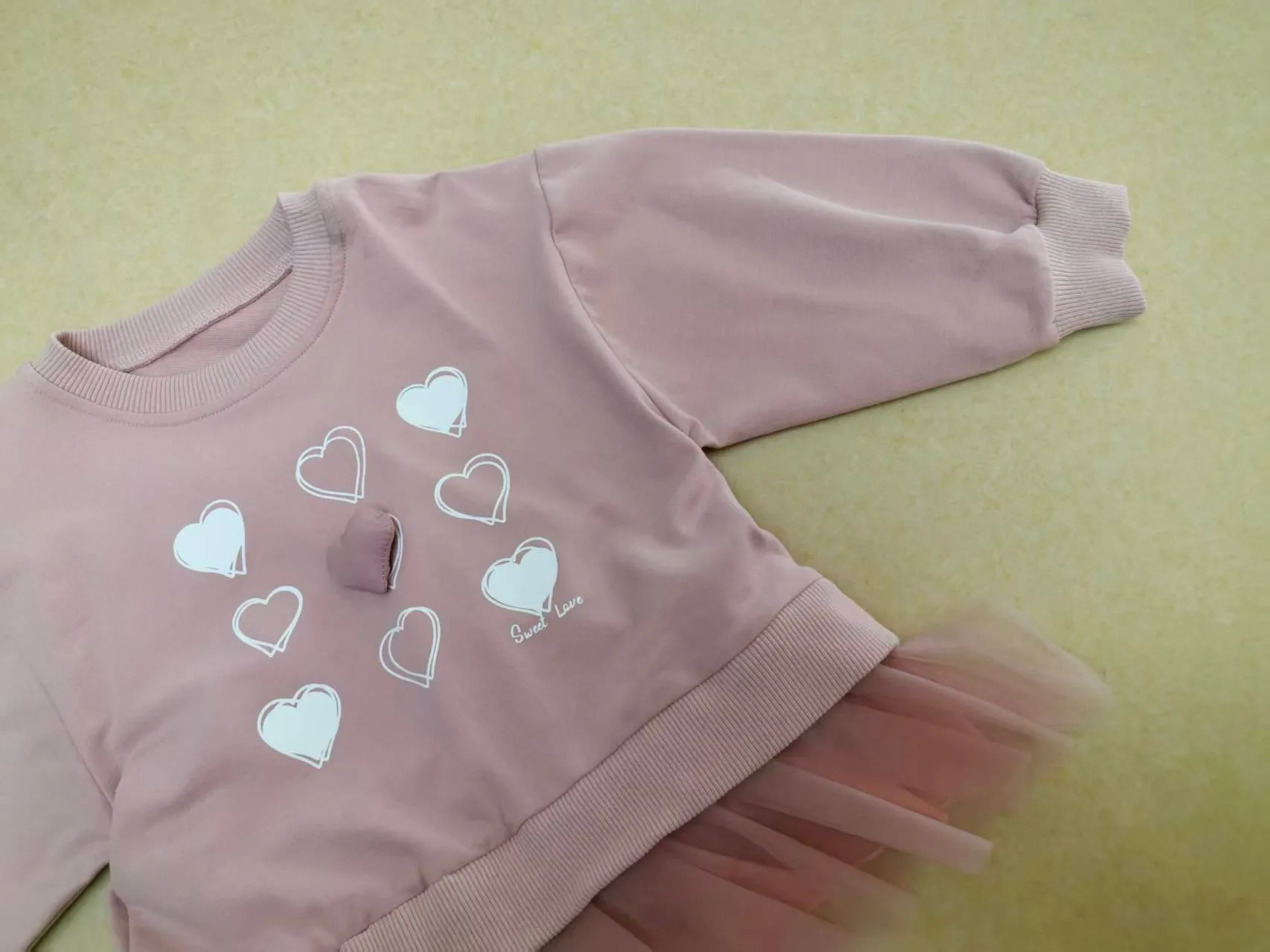 Sweet Heart-Themed Pink Multi-Heart Print 3D Heart Embellished Tulle Skirt Hem Design Girls' Spring-Autumn Long Sleeve Dress