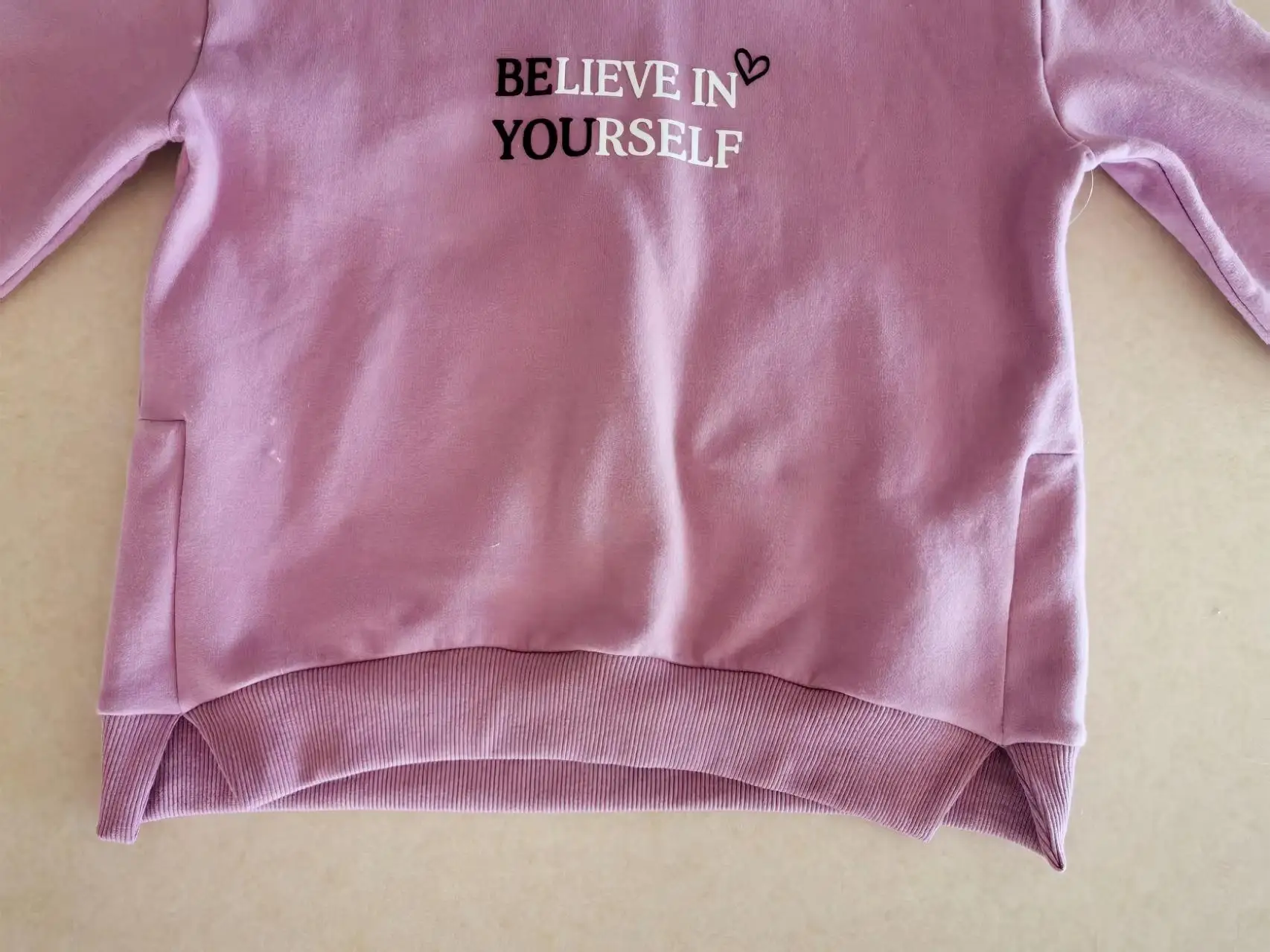 Girls' Autumn Hooded Sweatshirt Cotton/Spandex Eco-Friendly Front Printed English Letters & Hearts Design Ribbed Cuffs & Hem