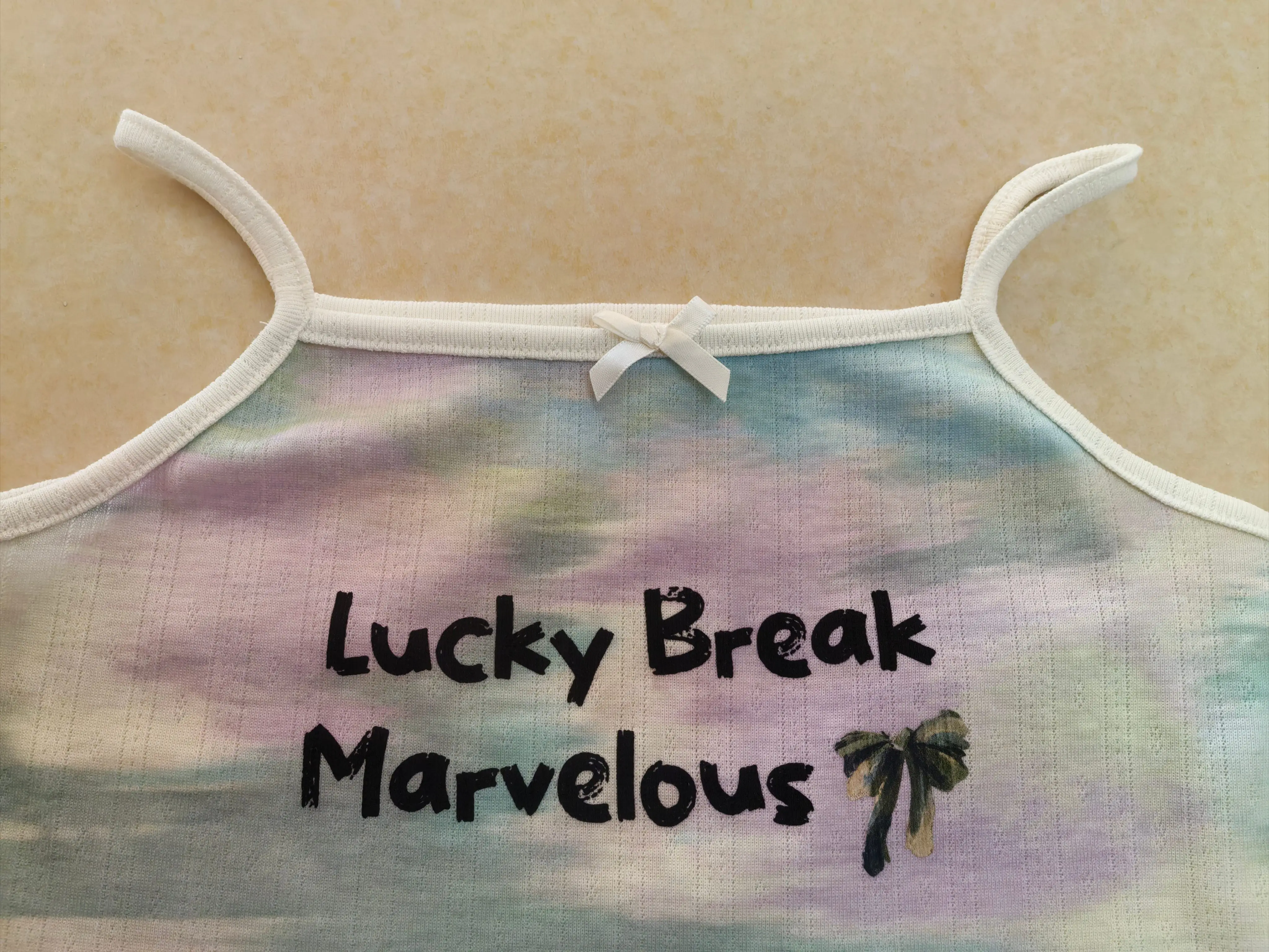 Whimsical-Themed Light Blue & Lavender Gradient Ombre Letter Print & Bow Decor Girls' Summer Tank Top