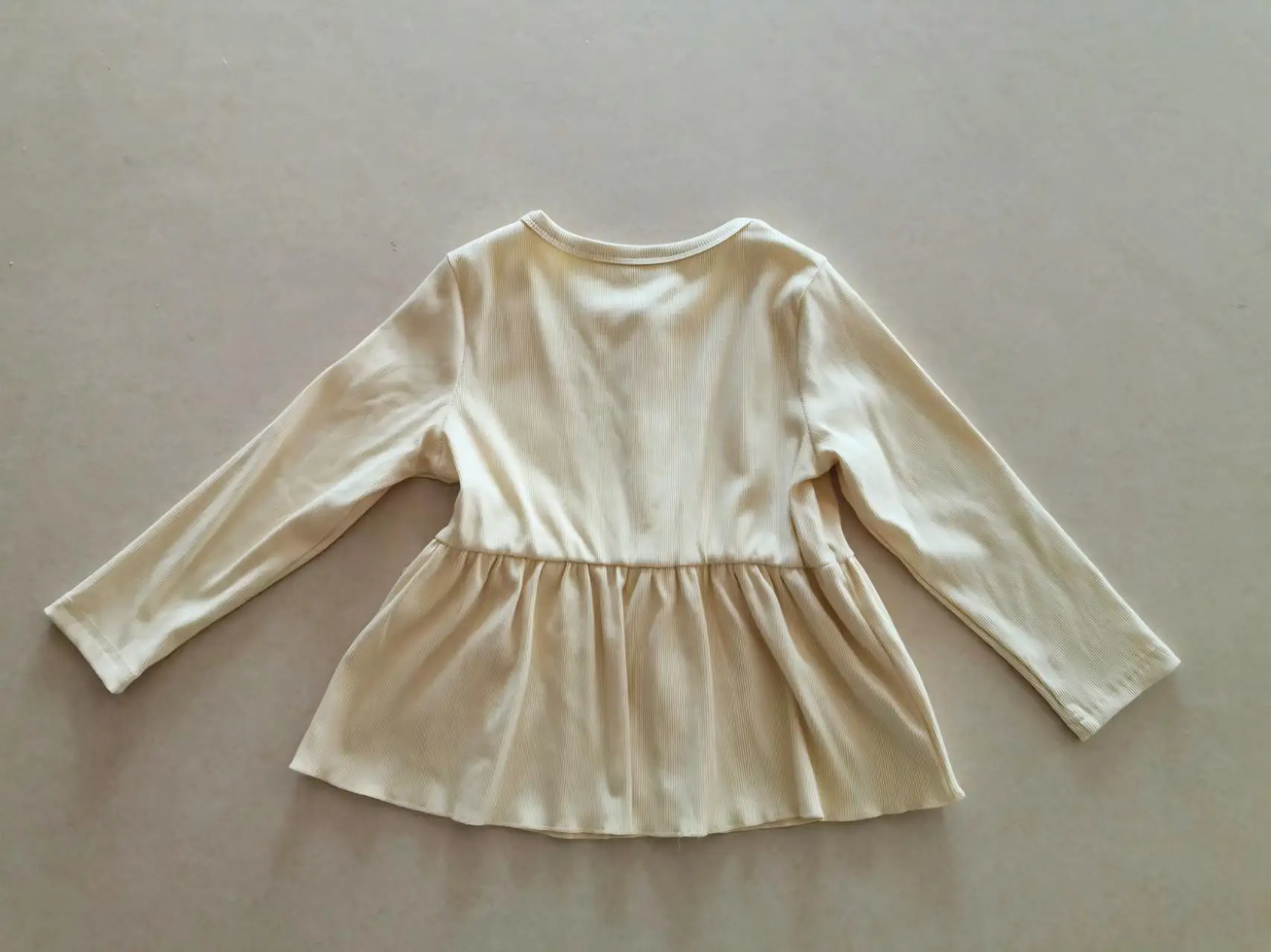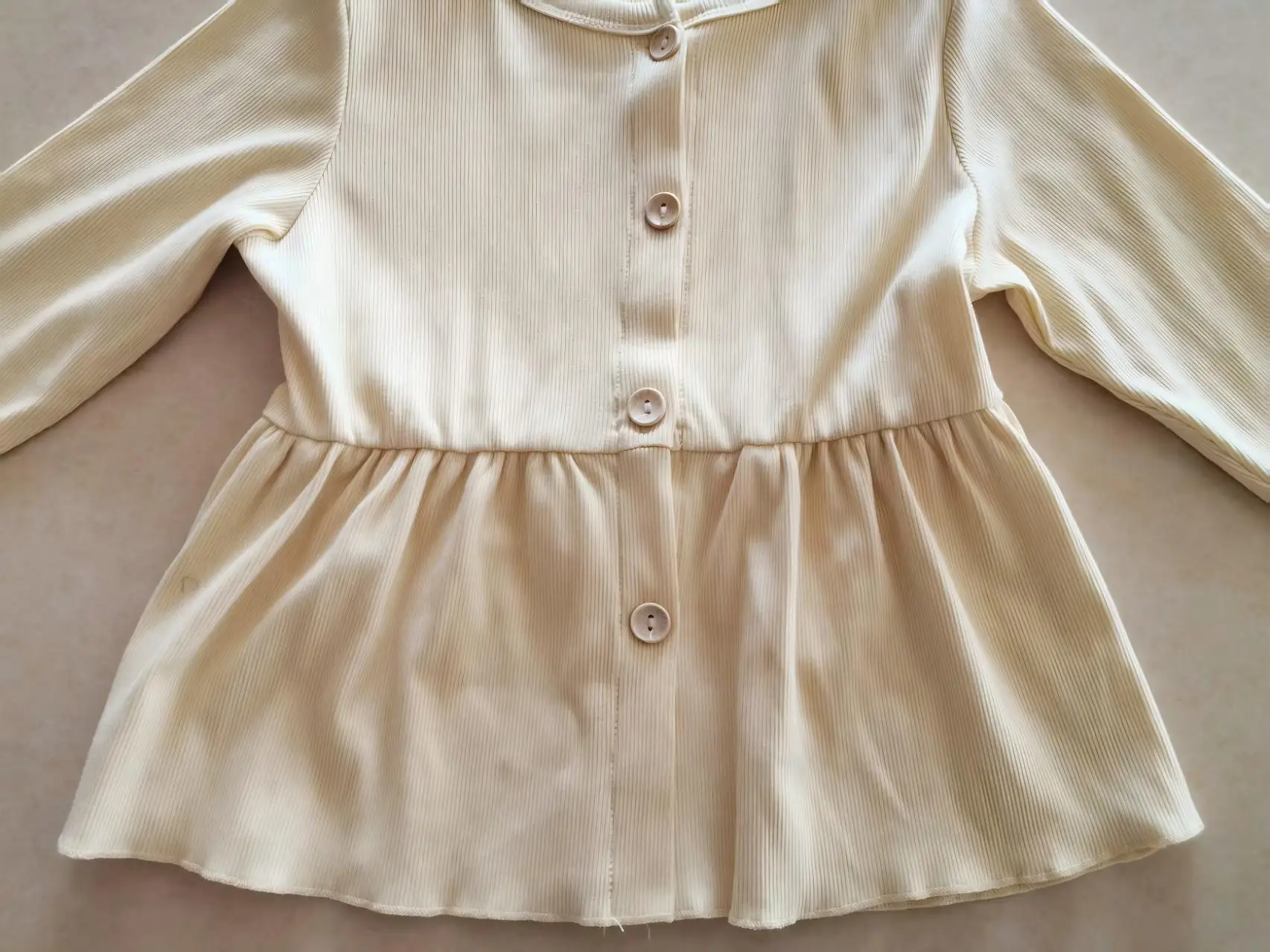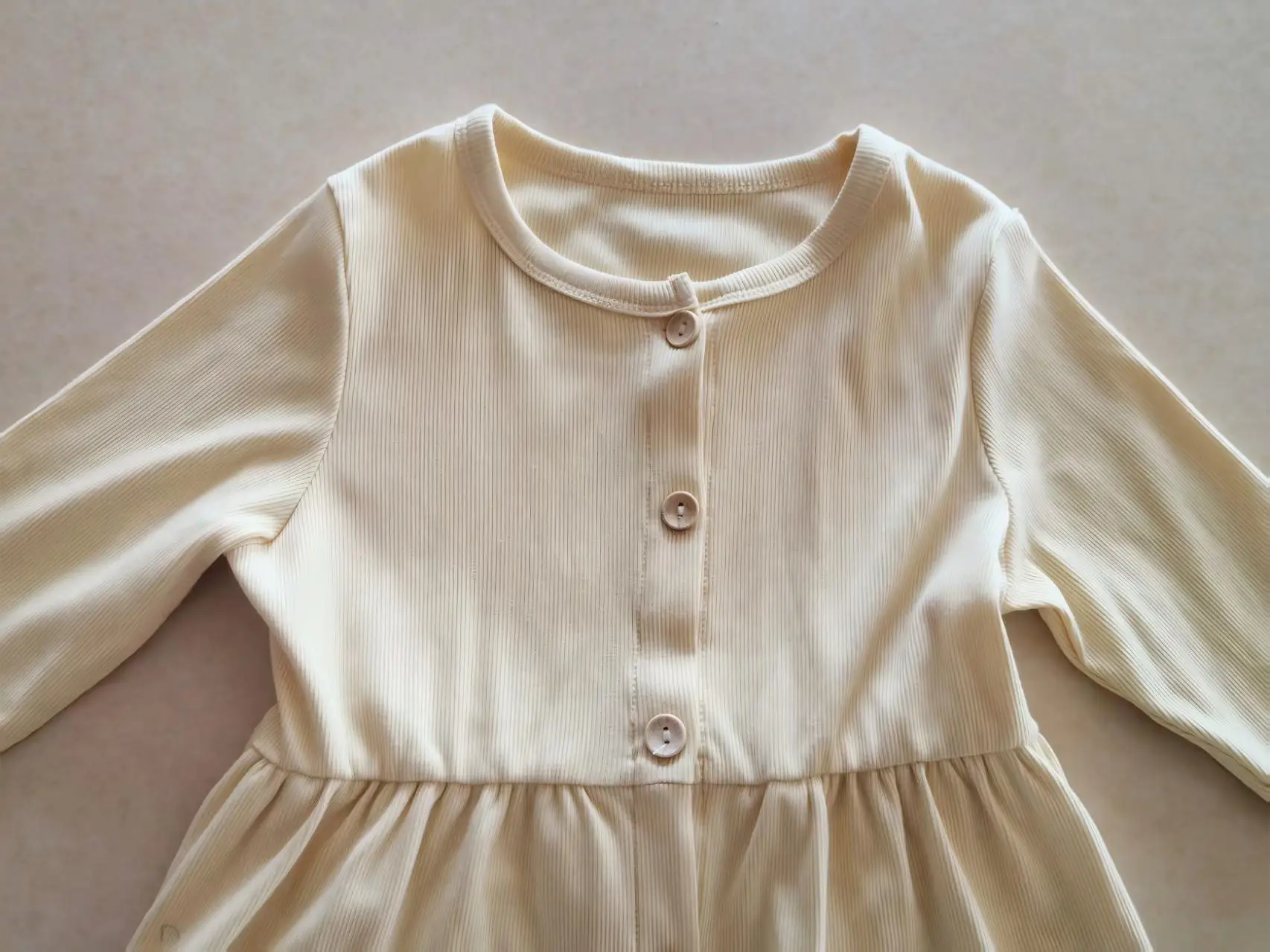 Minimalist Comfort-Themed Light Beige O-Neck Buttoned Waist Pleated Design Puffed Sleeves Eco-friendly Girls' Spring-Autumn Long
