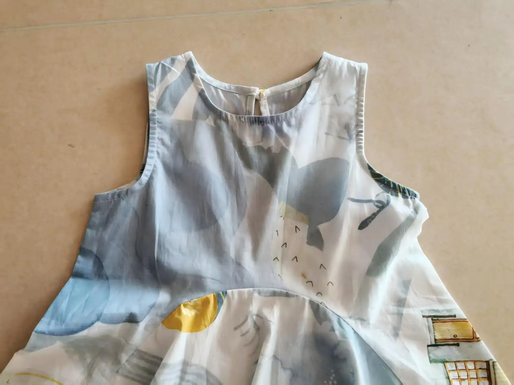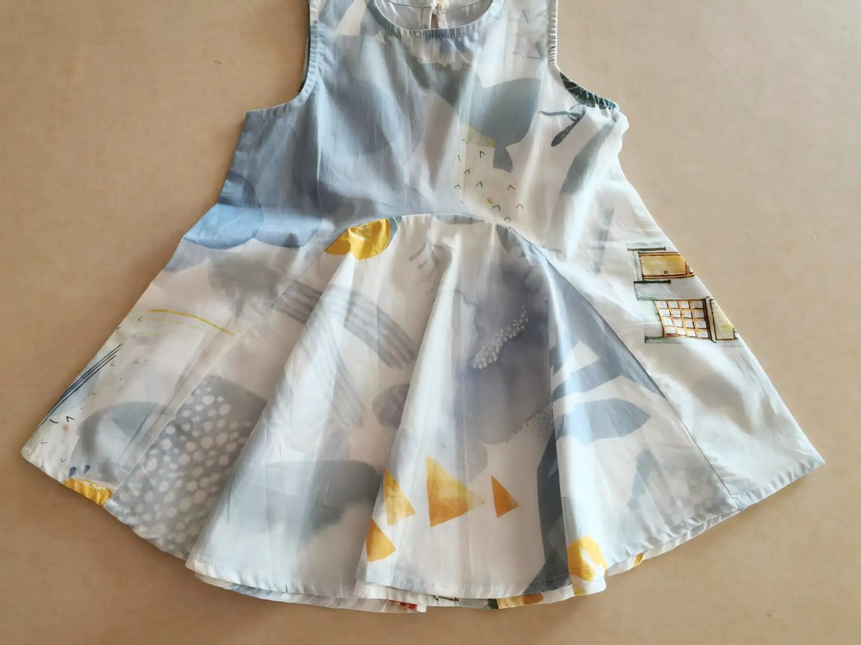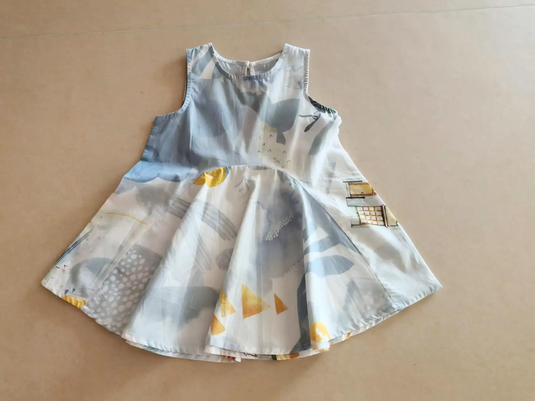 Geometric Animal Print Kids-Themed Light Blue White Base Print Girls' Summer Sleeveless A-Line Mid-calf Eco-friendly Puffed