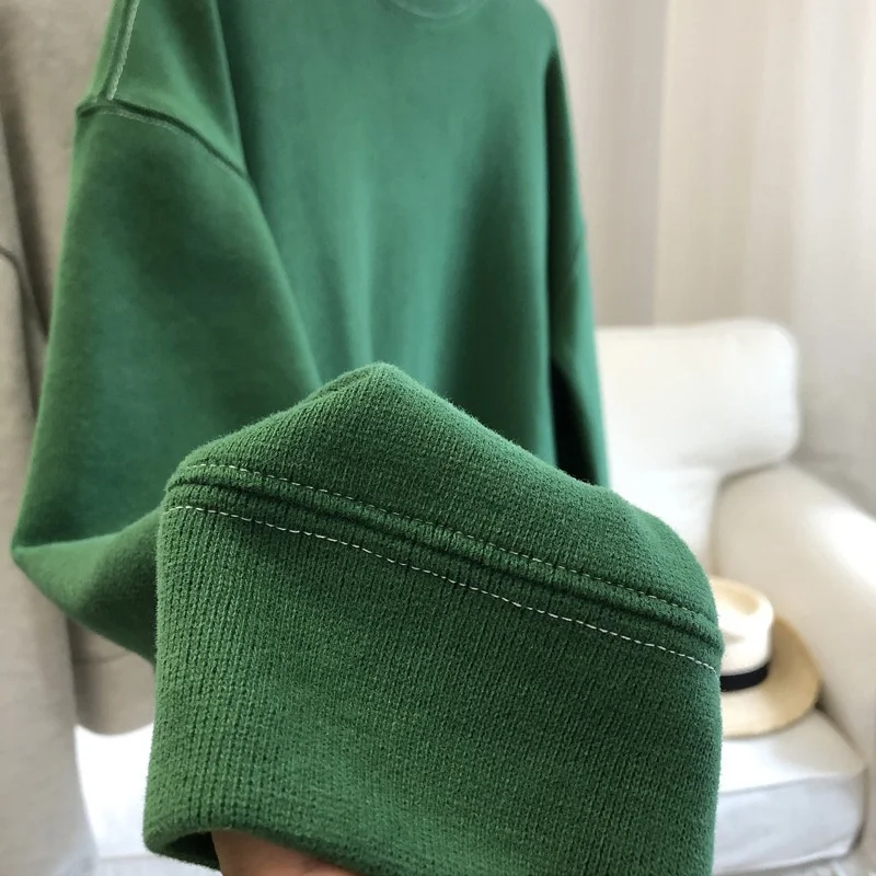 China V-Times Women's Loose Pullover Sweatshirt Long Sleeve Coat Topstitched Neck for Autumn Small People for who Look Tall Slim