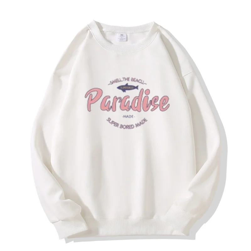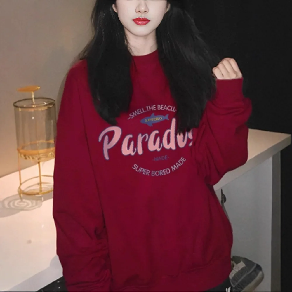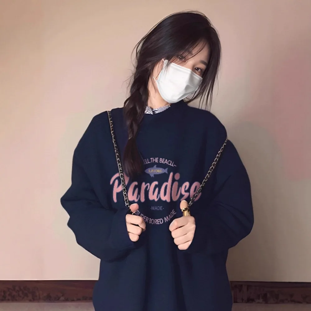 China V-Times Autumn Winter New American Style Casual Loose Sweatshirt for Women 100% Cotton Neck Letter Print Design Versatile
