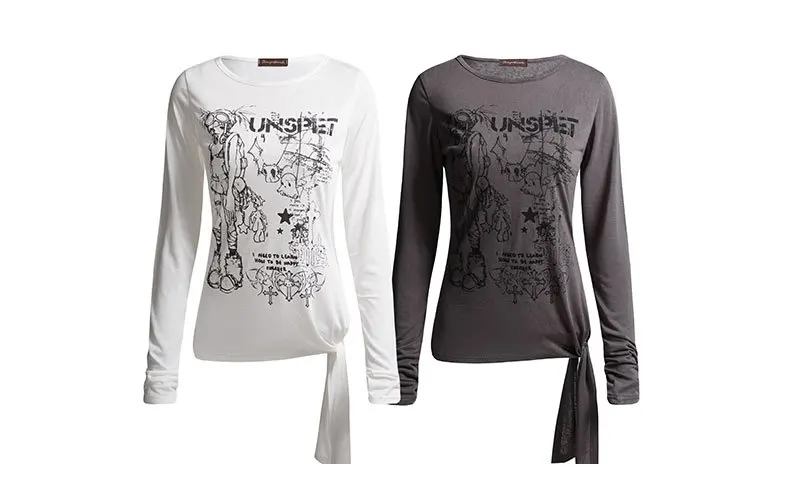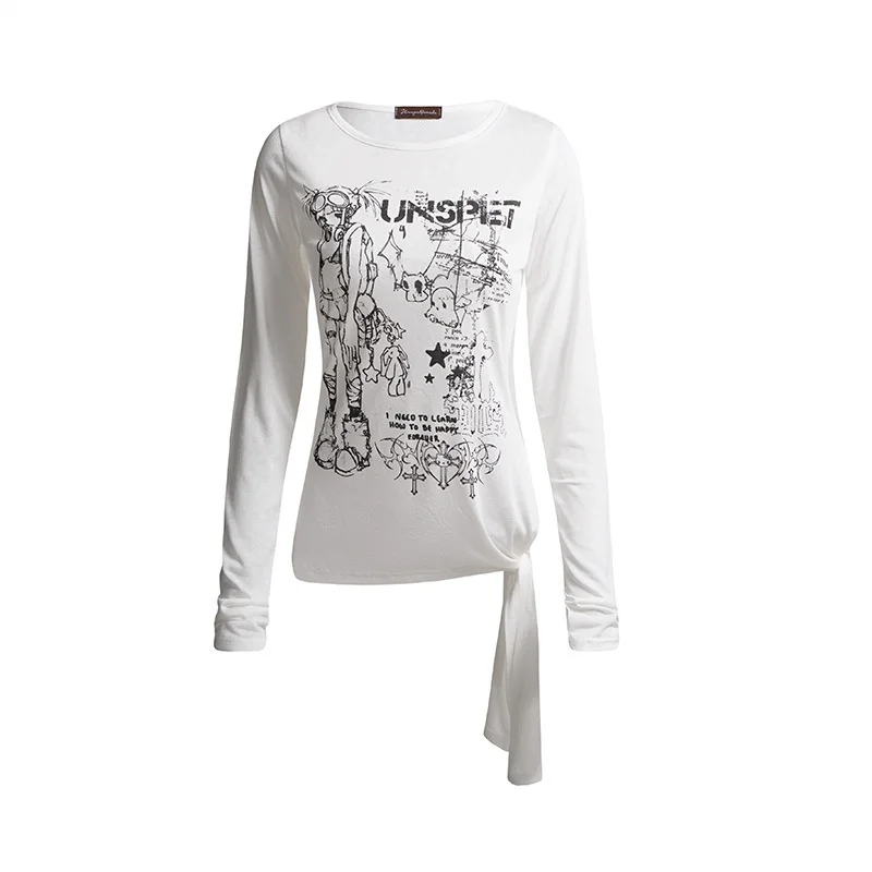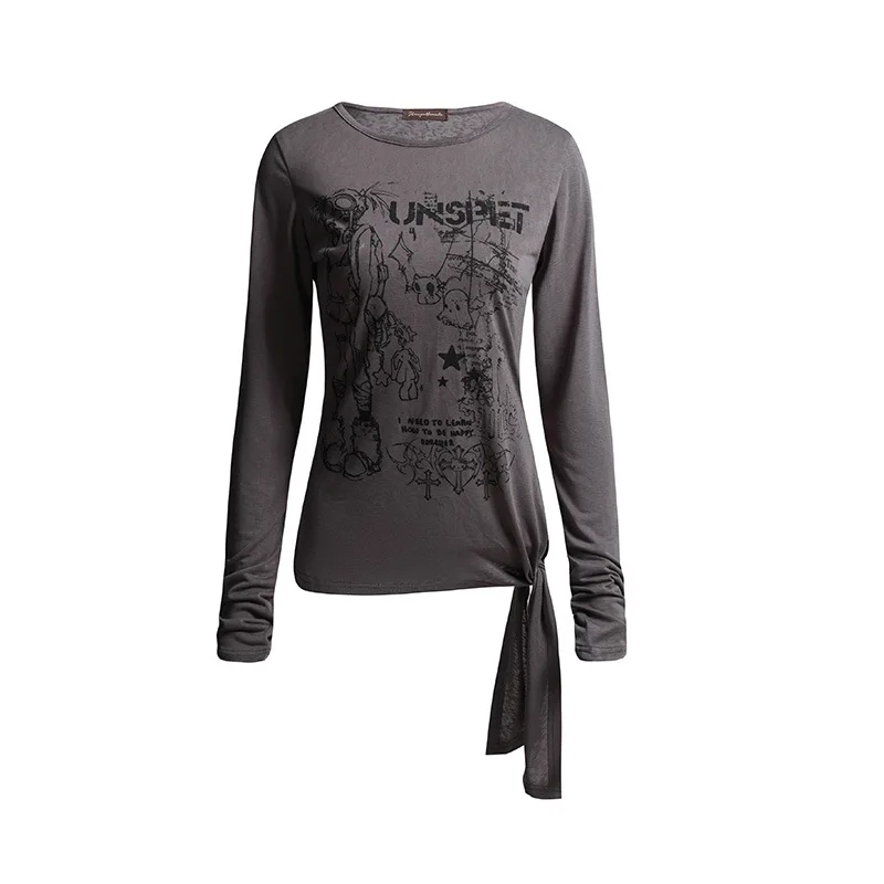 China V-Times Unspet Women's Casual Top T-Shirt Autumn New Long Sleeve WithRows Breathable and Irregular Hem Simple Style