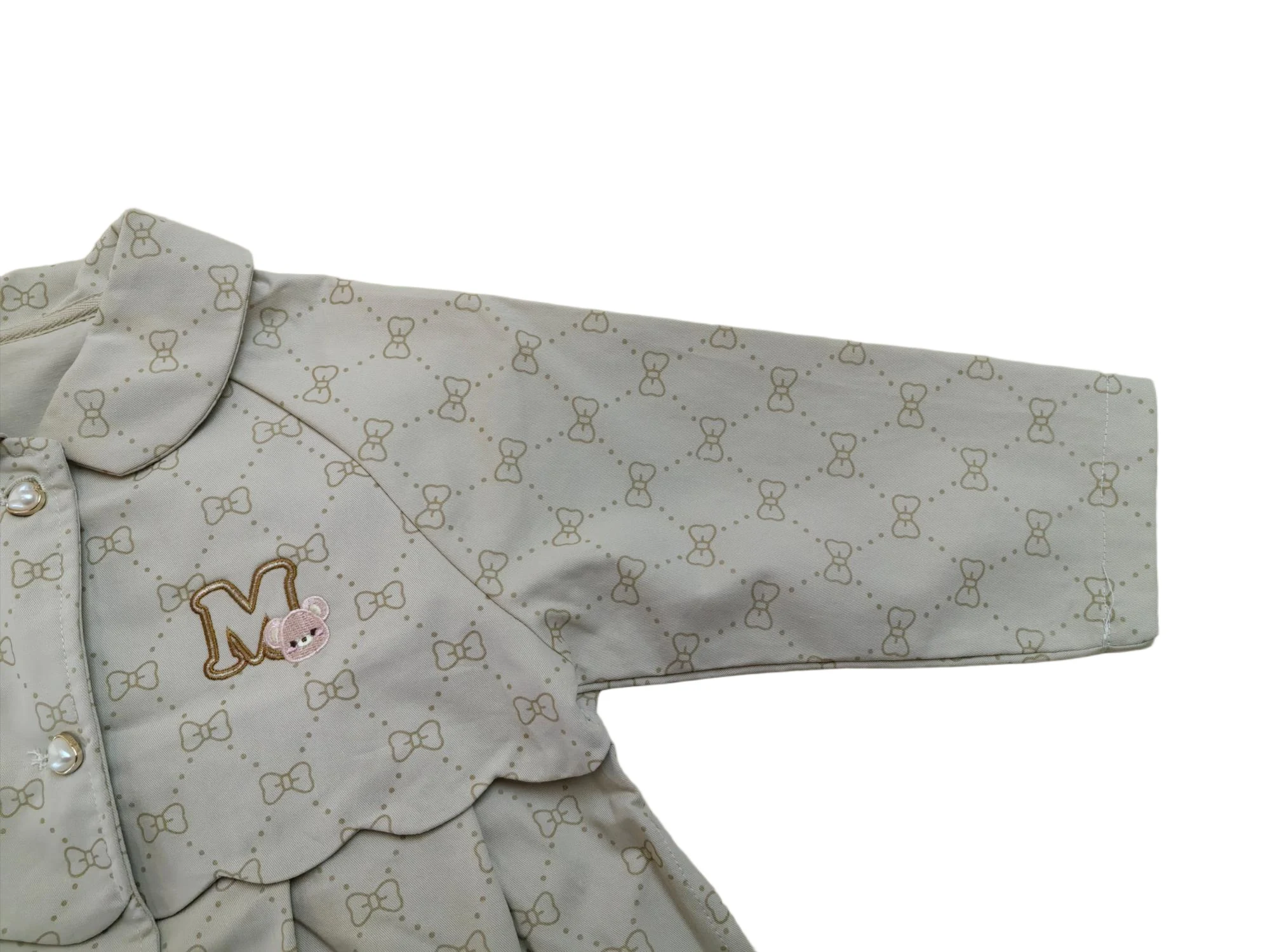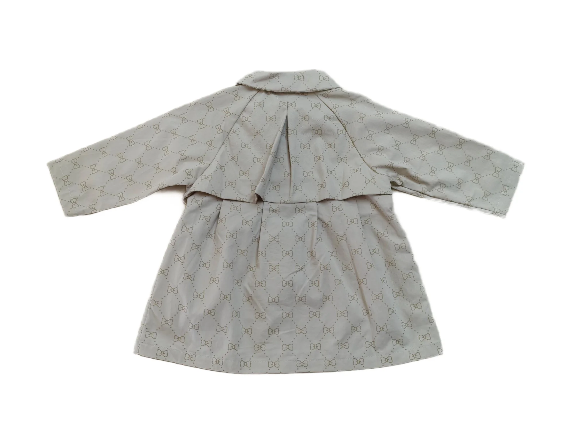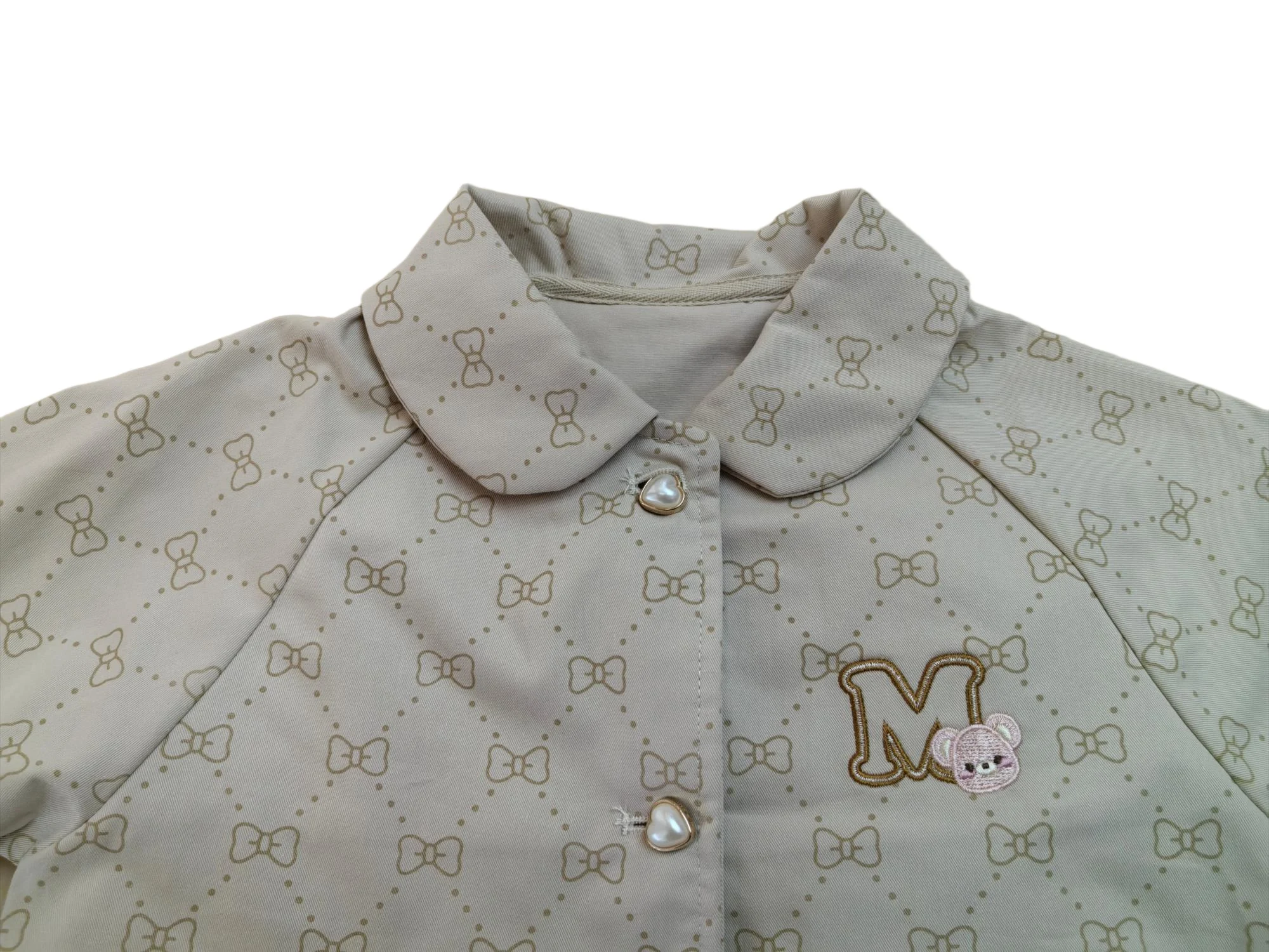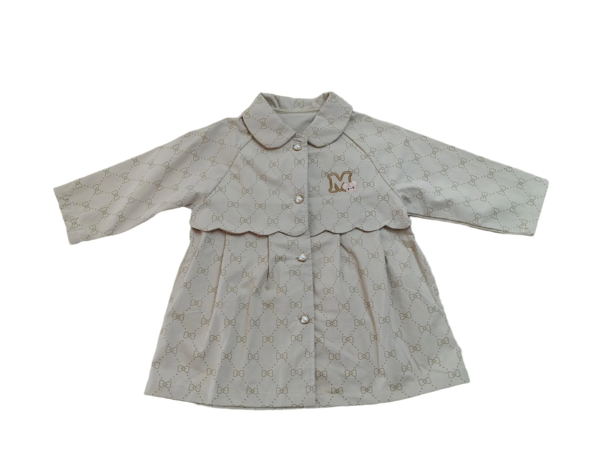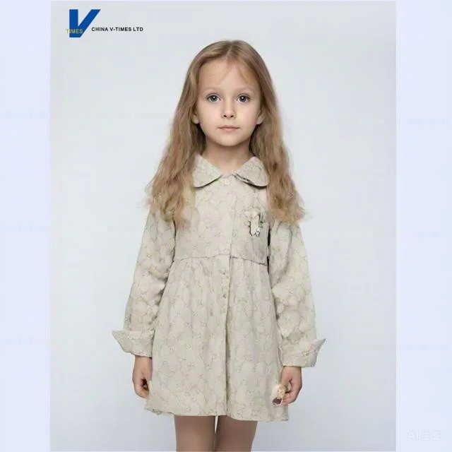 Elegant Classic Shallow Beige Fully Printed Delicate Patterns Stand-Up Collar Loose Long Sleeves Girls' Autumn Dress