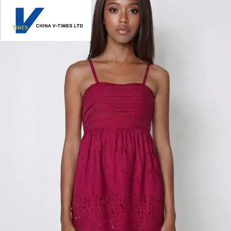 Cotton Woven Double-Layered A-Line Flared Slip Dress for Women Casual Solid