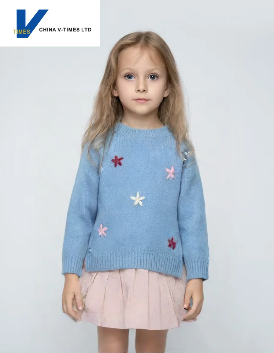 China V-Times 2026 Spring Autumn Girls' Sweater Stylish New Baby Knitwear Top Trend in Children's Clothing for Fall