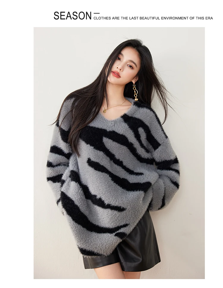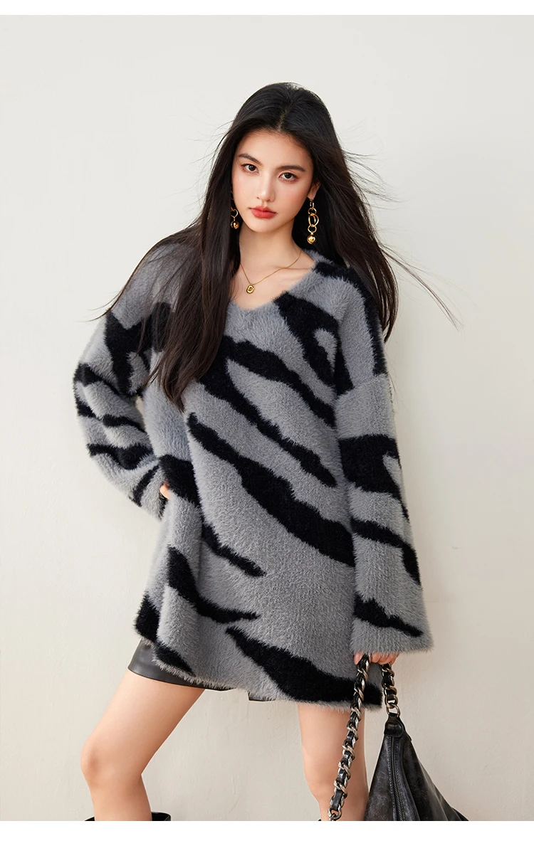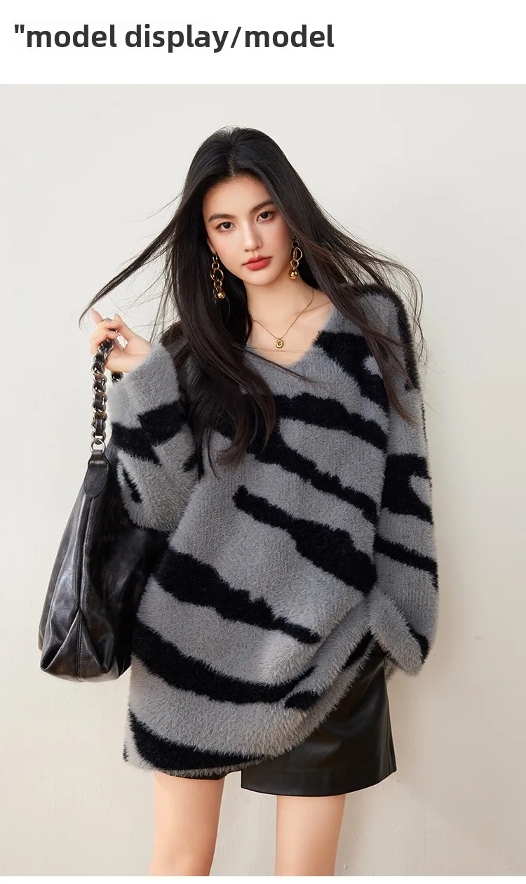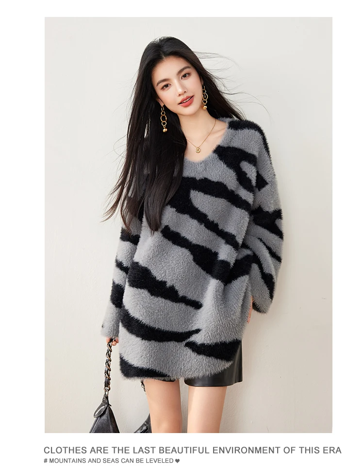 China V-times 2026 Vintage Women's V-Neck Pullover Elegant Mid-Length Loose Top Knitted Sweater in Long Style Lazy Style Sweater