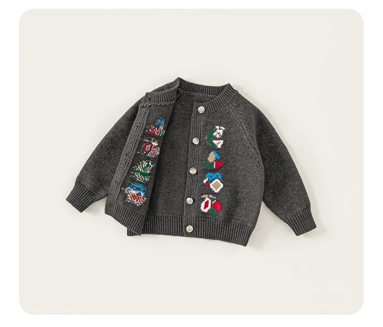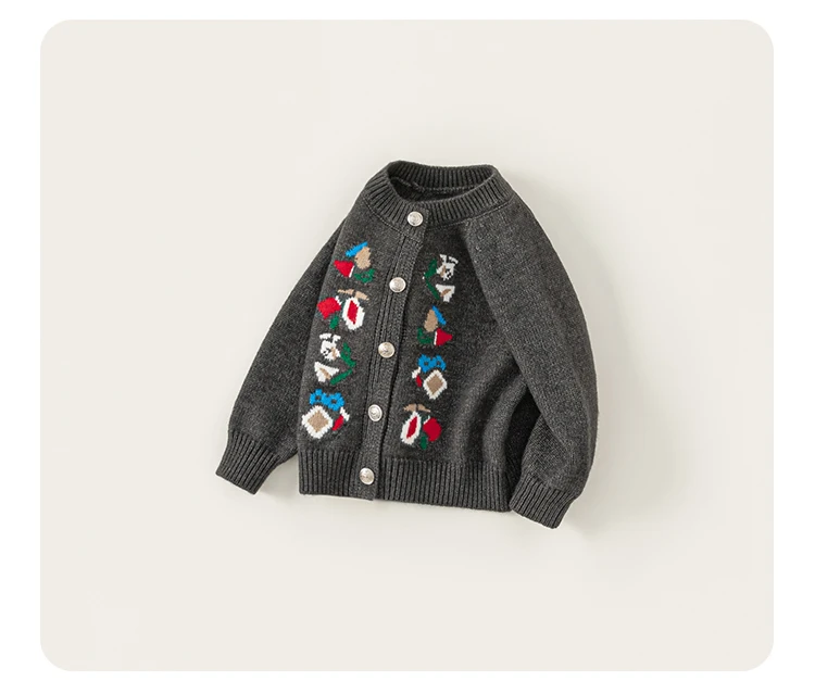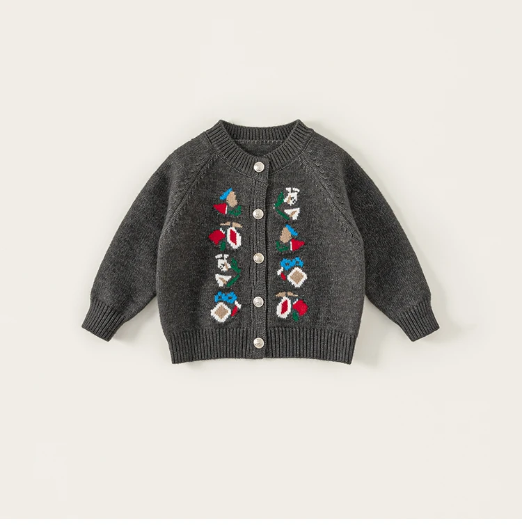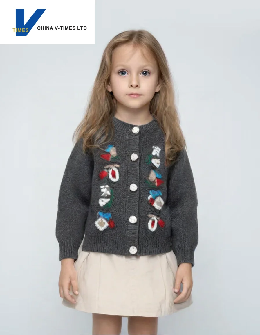 China V-Times 2026 Autumn Girls Sweater Stylish Children's Knitted Cardigan with Embroidery Spring & Autumn Baby Coat