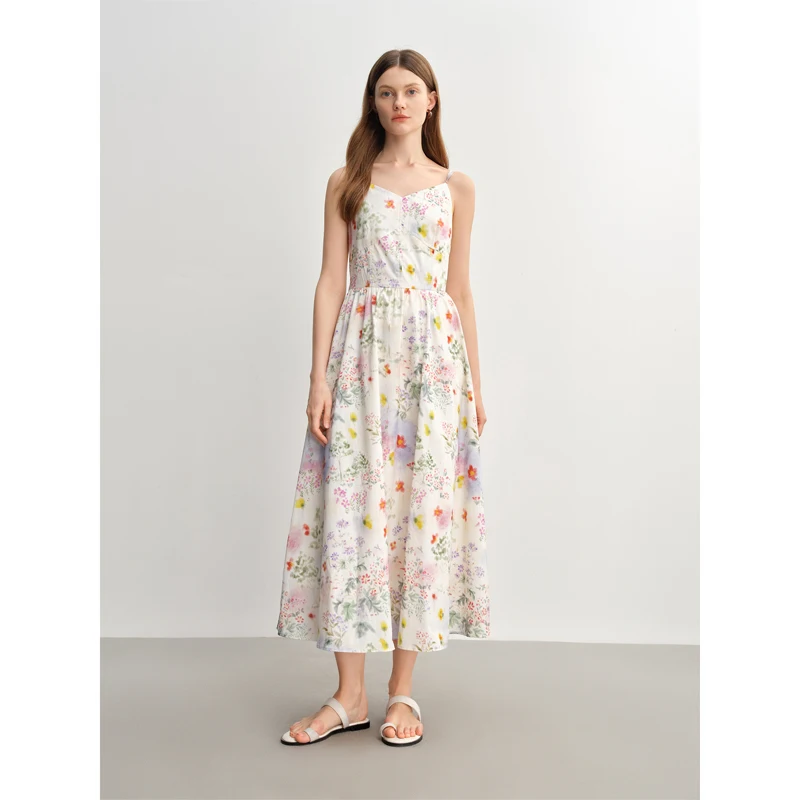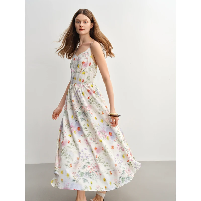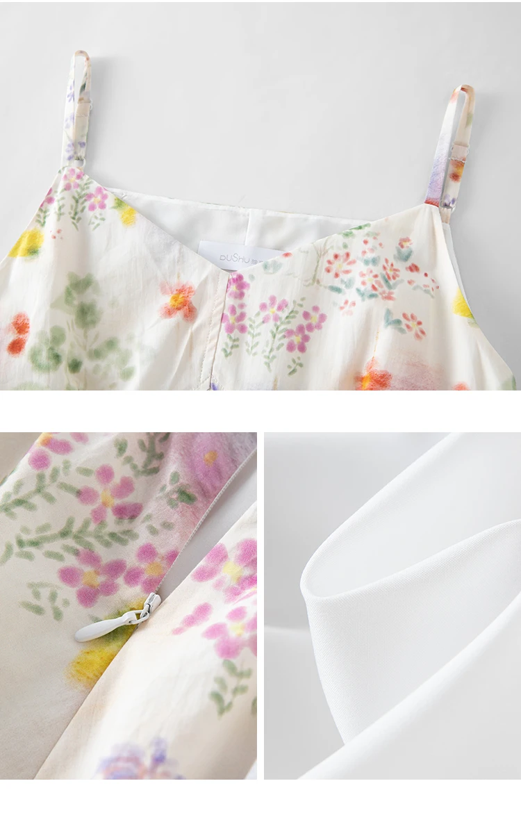 Women's Large Size Fresh Floral Print Summer Dress Elegant Versatile Strap Design for Vacation Slimming Floral Dress