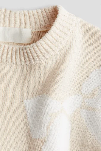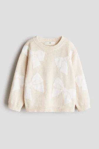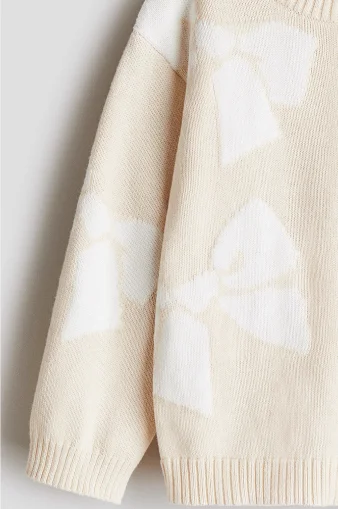 China V-Times Korean Style Girls' Sweater for Children Round Neck with Bowknot Jacquard Long Sleeve Knitwear for Autumn