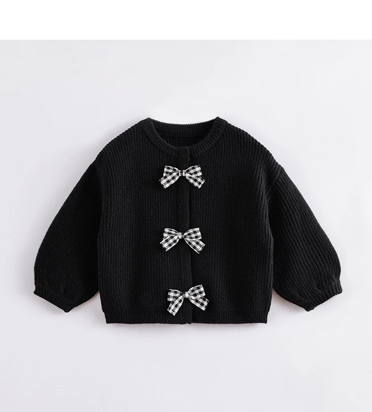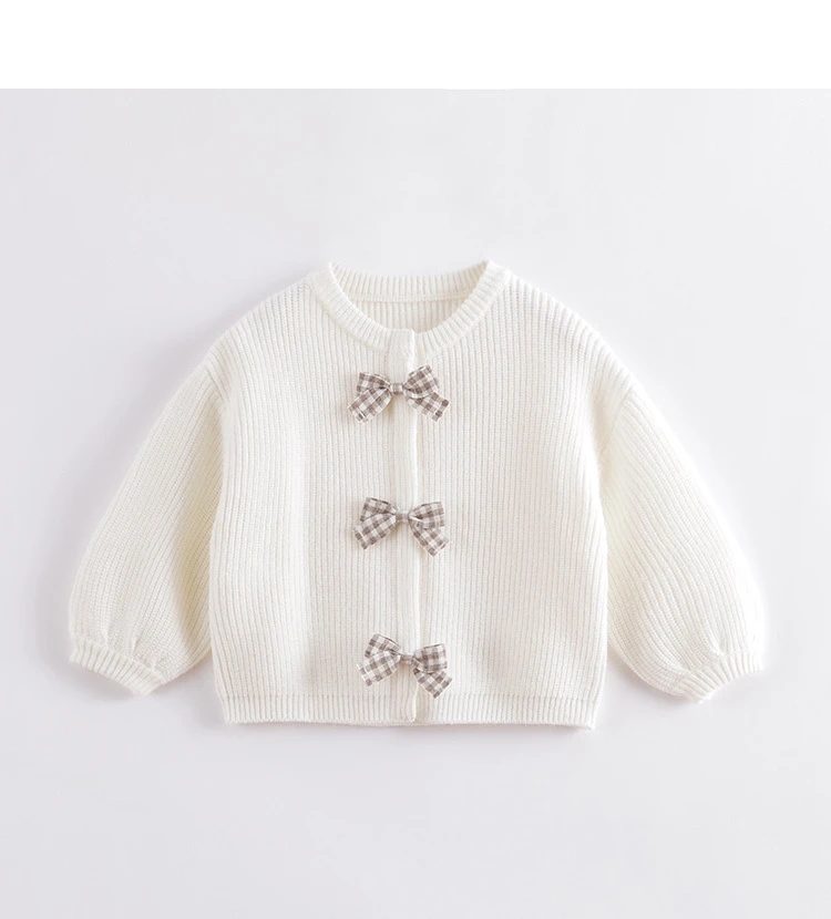 China V-Times 2026 Autumn New Collection Girls' Round Neck Bow Knit Cardigan Sweet Style Drop Shoulder Sweater