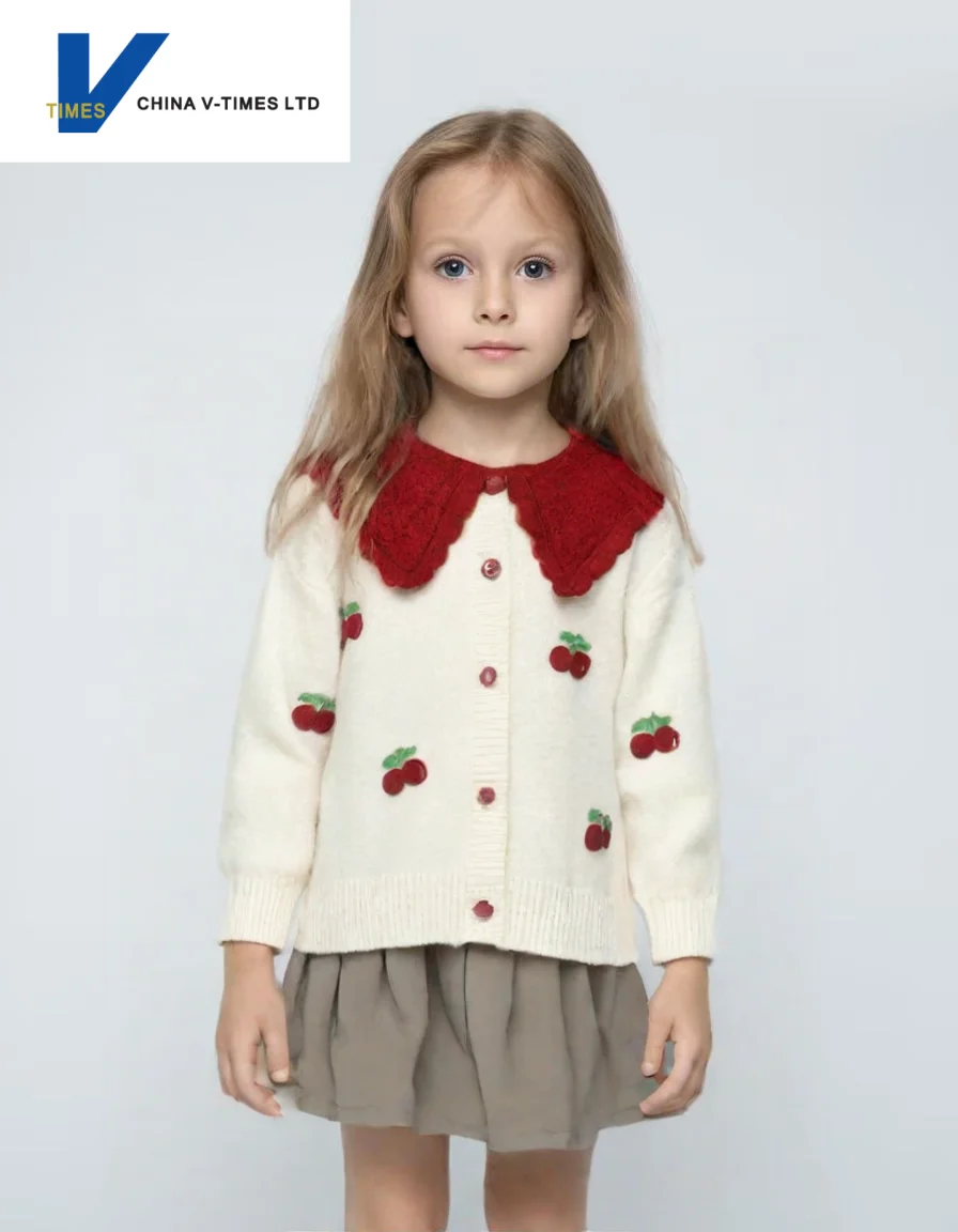 China V-Times 2026 Autumn New Baby Jacket Super Beautiful Girls' Sweater Knitted Cardigan for Spring and Autumn Trendy