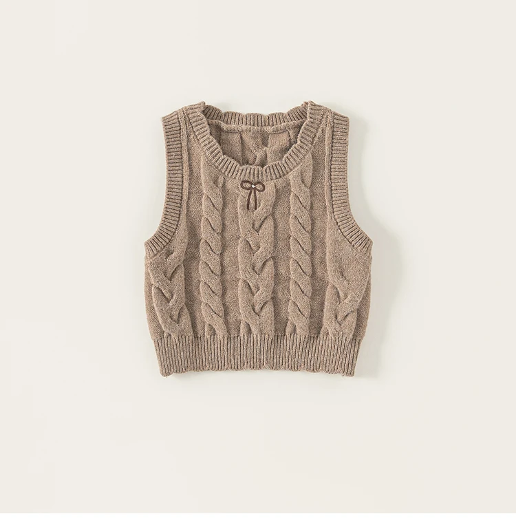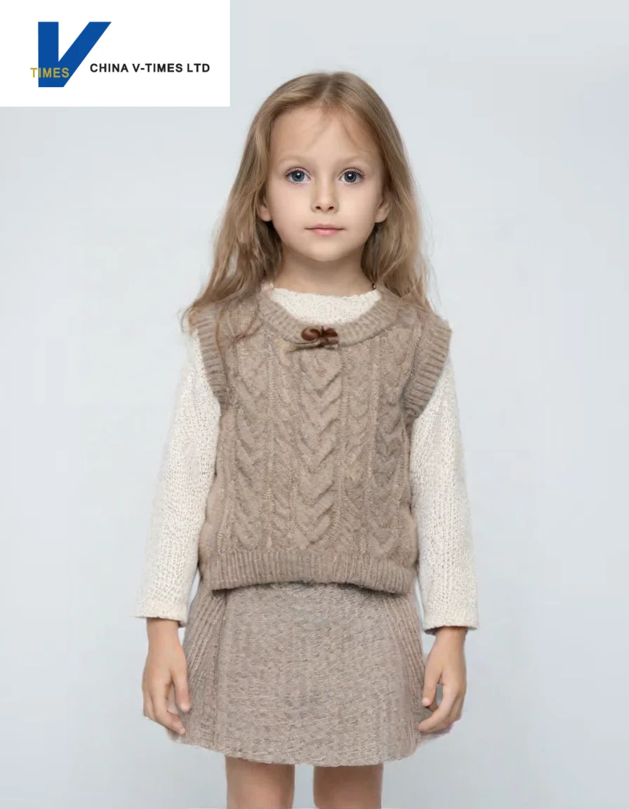 China V-Times 2026 Girls' Casual Autumn Knitted Vest New Baby Fashion Children's Insbobo Knitwear Sweater
