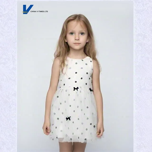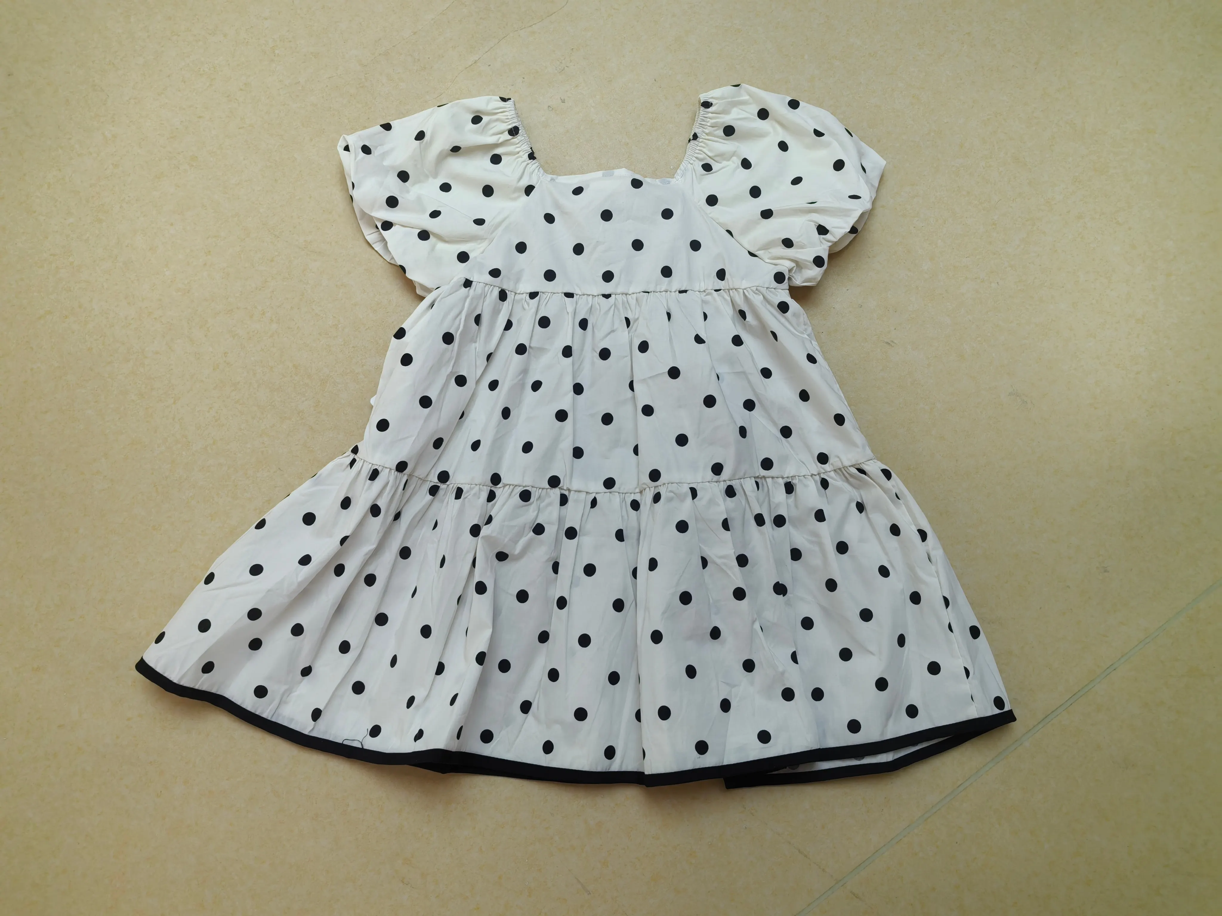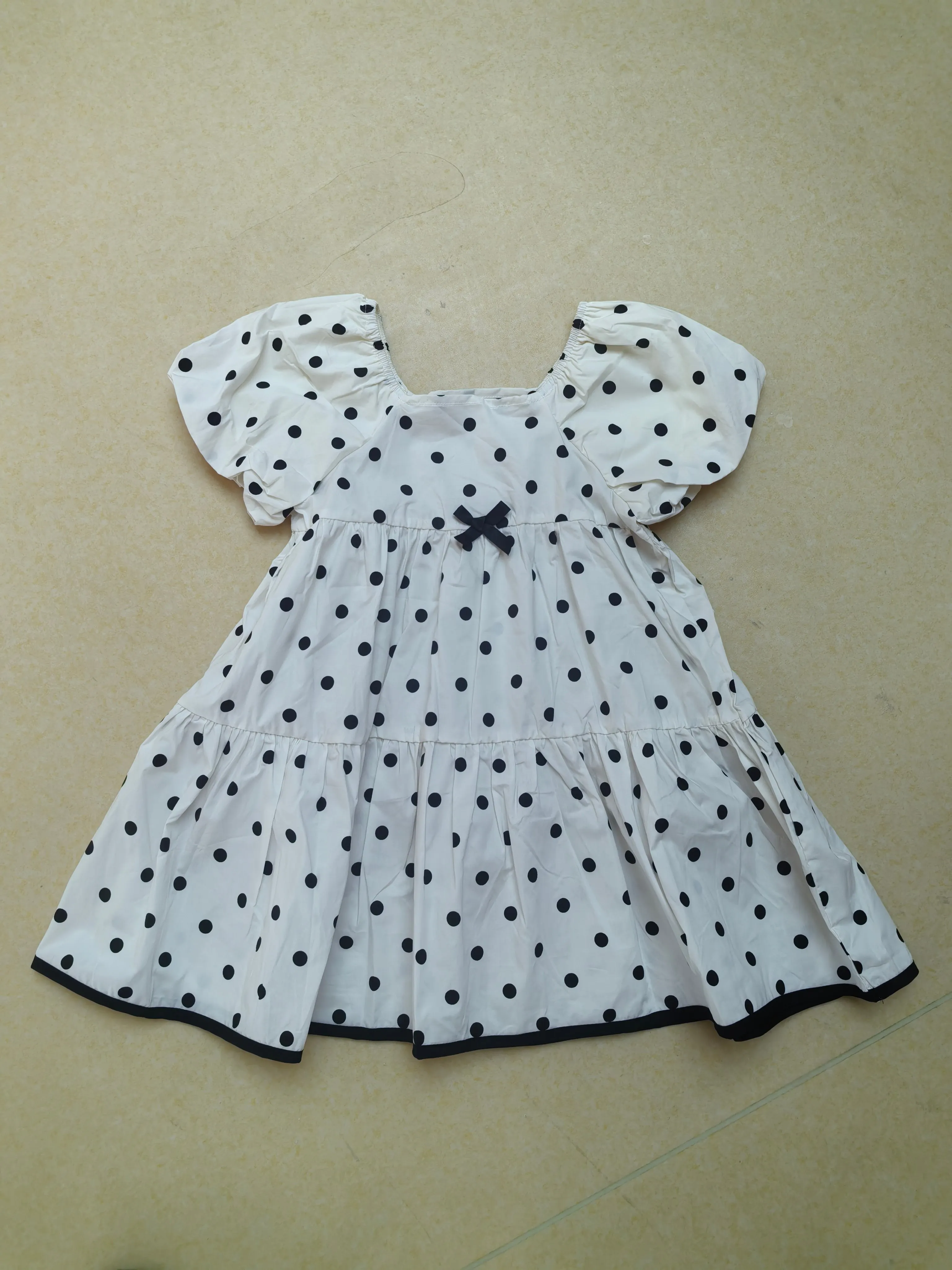 Girls' Summer Retro-Cute White Base with Black Polka Dots Puffed Sleeves Short-Sleeve Dress